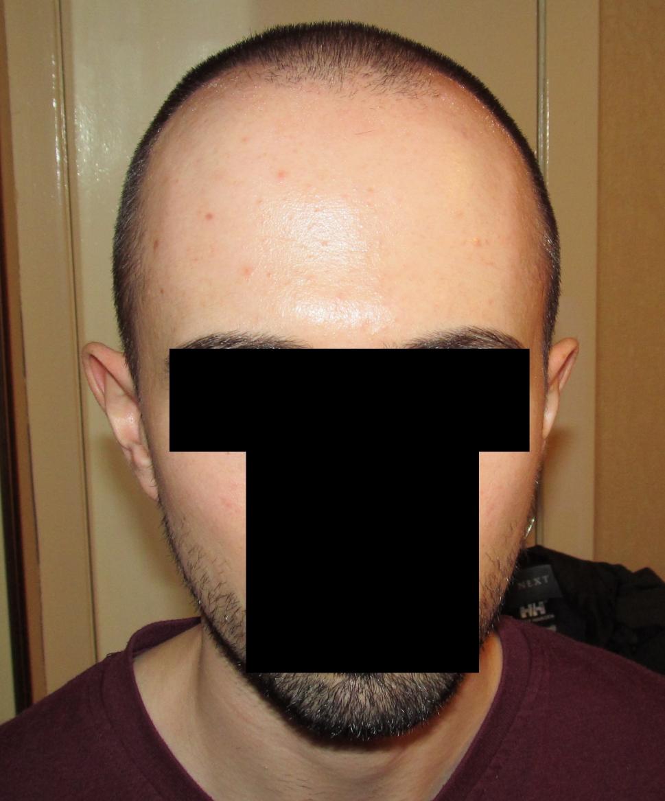Things slowed down after that, but I was obviously far from happy. I haven't been happy with my appearance since that early recession when I was 16/17. When I was something like 22 I tried liquid minoxidil to see if I could get any frontal regrowth. I hadn't looked at hair loss websites etc. so I wasn't very knowledgeable about treatments. I got some peach fuzz regrowth within the first couple of months but I gave up because of sides (bad skin irritation, sore eyes). I "gave up" on treatments at that point for a few years, which brings us up to date.