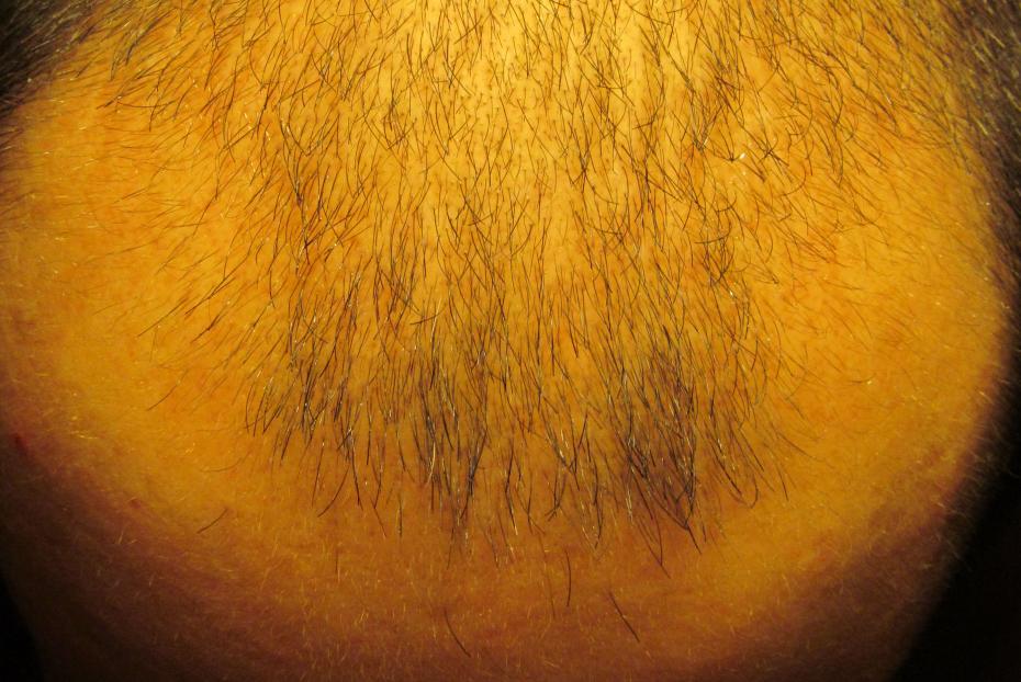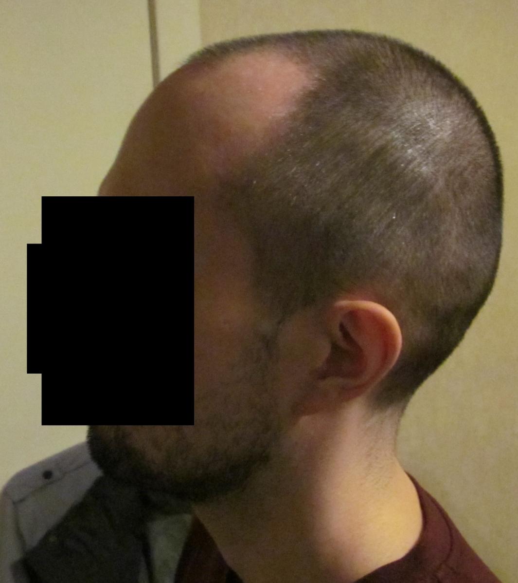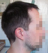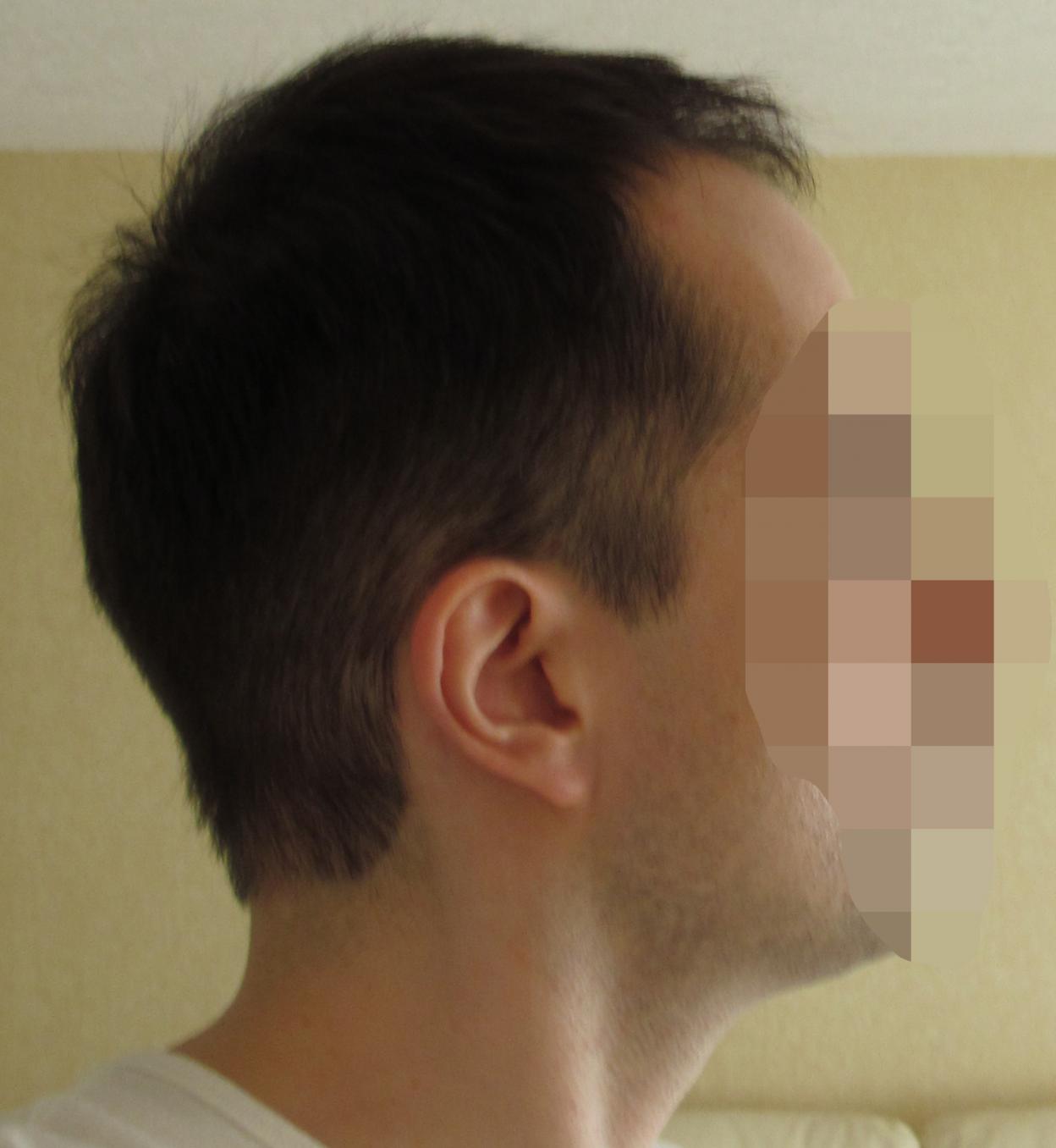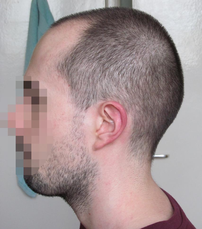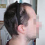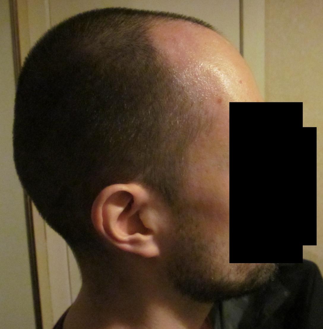 Closeups of temple regrowth, one side shot and a picture of the crown improvement - which has surprised me since I've only used a bit of spironolactone there for "the itch" in addition to using Regenpure DR (and NT in between). I have pretty bad hair loss around the ears as you can see quite well in that side pic. I searched through the forums but didn't find much about that, other than comments saying it is part of male pattern baldness for "some people".