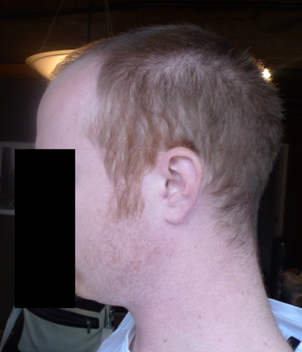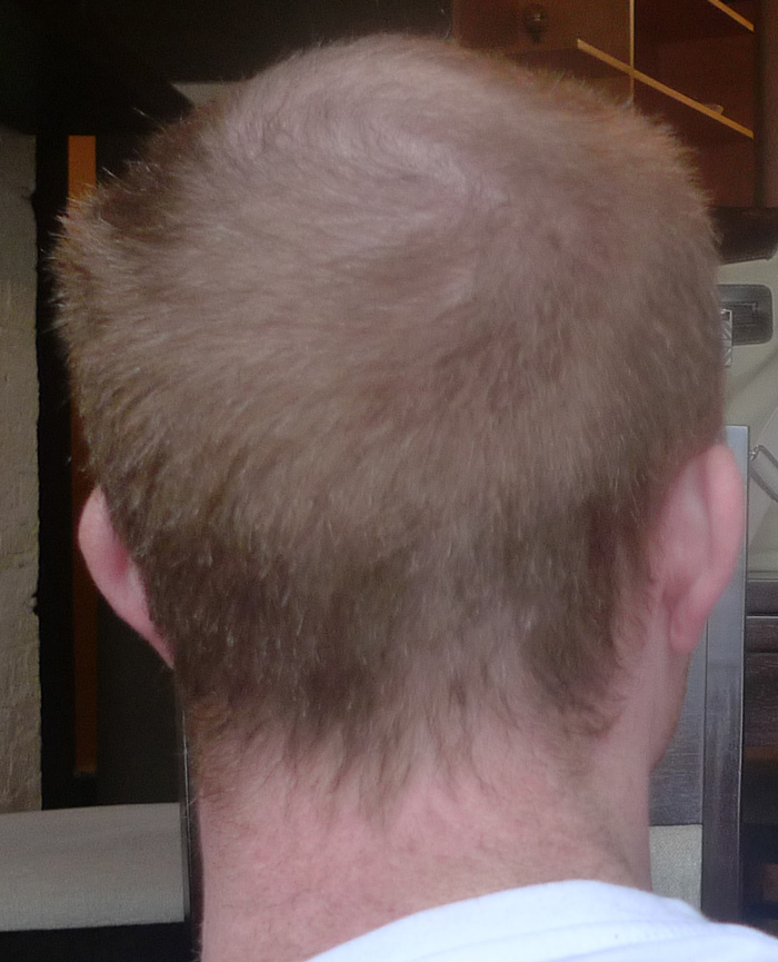 Discovered at that point that I look terrible with a shaved head. Two months later, I have very short hair. I've taken pictures and posted them here, since having this short hair really helps in showing where my loss is at the moment.