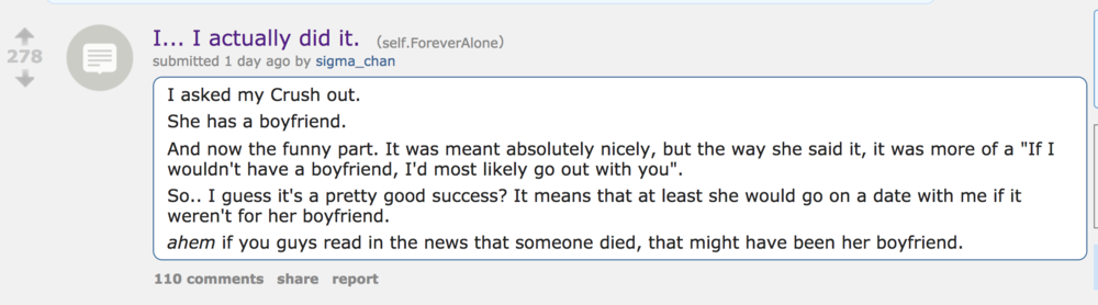 Also, way to take a big step in rejection therapy. Every time you get rejected, you get stronger -- it just hurts less each time, and you gain confidence and keep trying. Then one of these days, the crush will say yes!