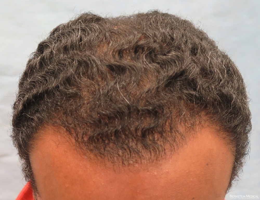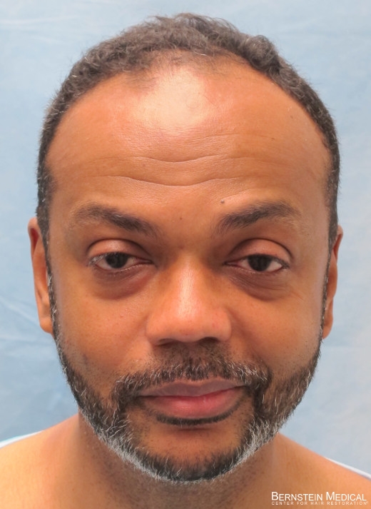 Bernstein Medical - Center for Hair Restoration Patient IJC is an Norwood Class 4A with dark brown, textured hair and a donor density of 1.5 hairs/mm2. His Results photos shown are after one hair transplant of 2,275 follicular unit grafts.