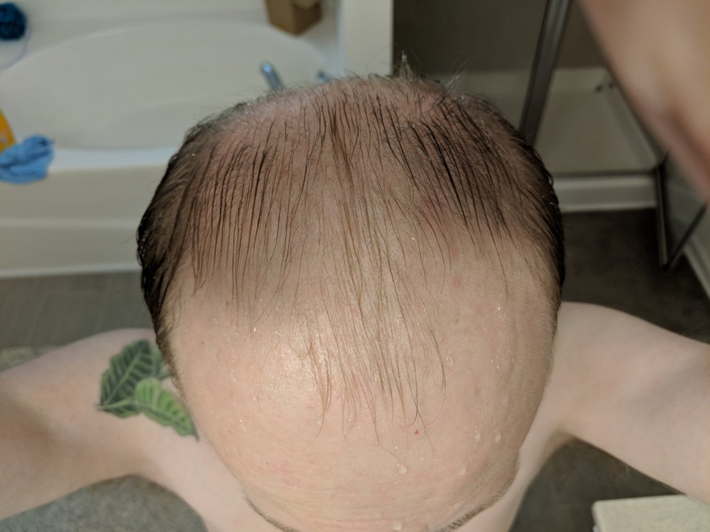 Hair is buzzed to 5/8" currently. (16mm). I prefer to keep it at this length, even after a FUT/FUE.