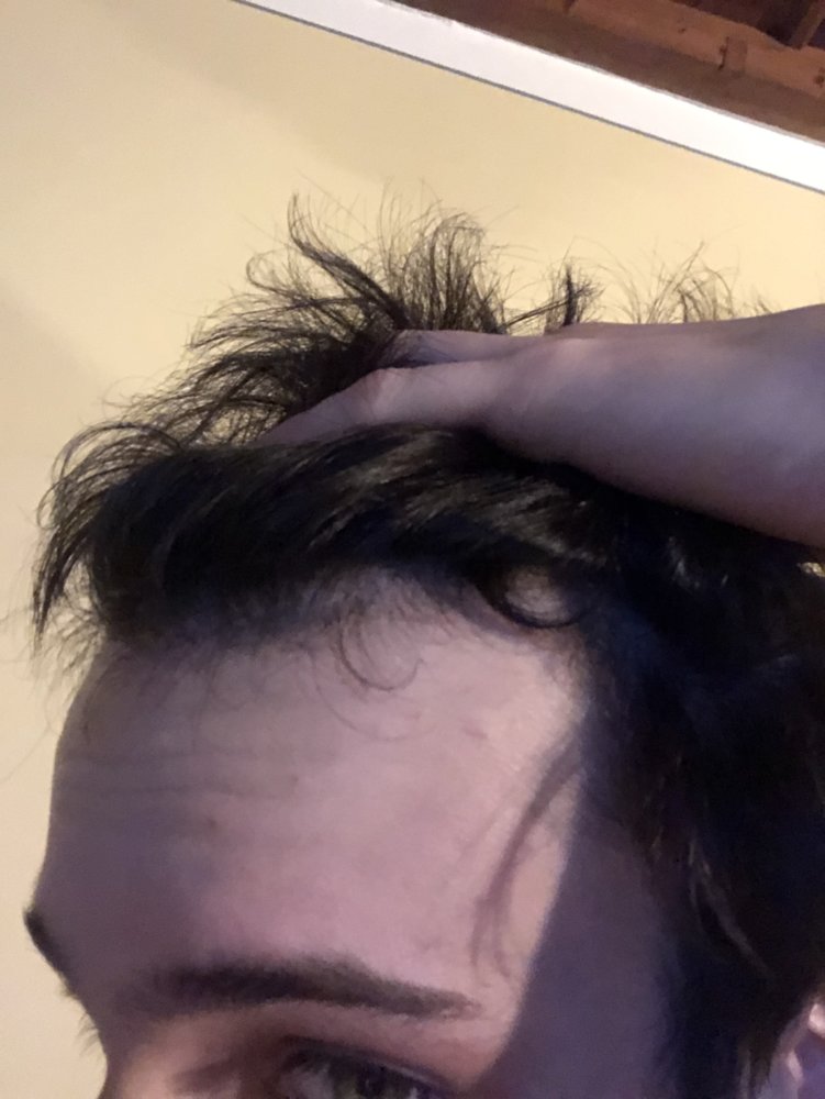 It’s not too bad i think,no one has ever noticed it.In the second photo it seems bad but i don’t think it is,i’ll show you how it’s the hairline on the right side in order to show you(on the left side it’s better).