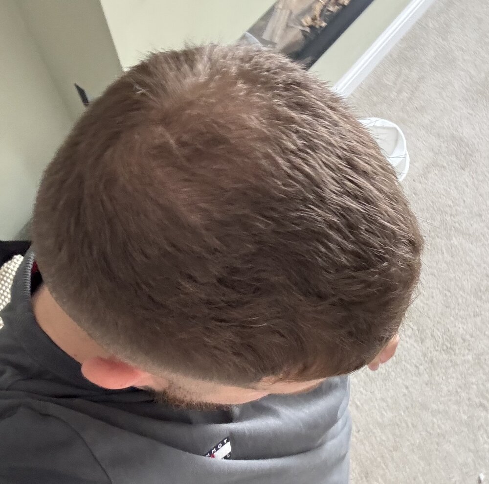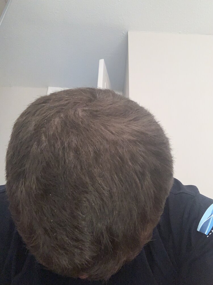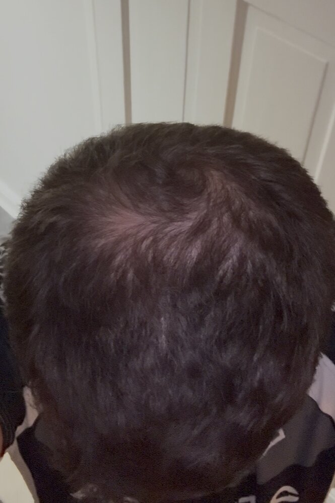 Hi my gf snapped this photo of me yday and I’m worried I’m balding. I did have a hat on all day and could this be just sticking my hair together? I attached another pic (2nd) from the same day for comparison