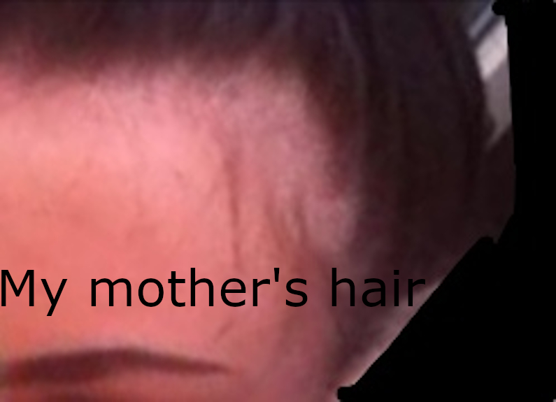 I also want to point out that my mother has very thin hair at the front of her head, and has a widow's peak too, as you can see in the photo; my grandmother and uncle seem to have the same thing too.