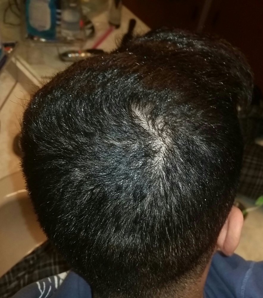 I got a haircut the other day and I noticed that the top of my head looks like its balding a little. My parents say its normal but I think otherwise. Im 17 and have no family history of young hair loss. Im not sure this was always here because I never really took a look at the back of my head