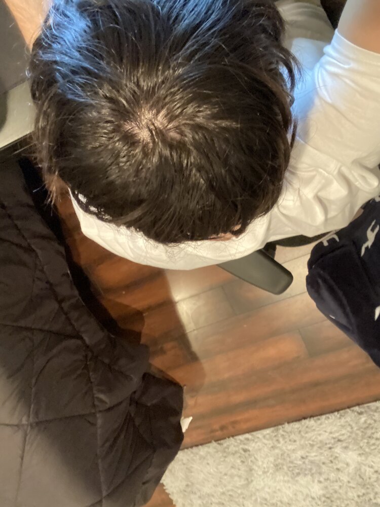 I take pics of my crown every so often (I think because of anxiety. I check if its balding or not and go on with my day). Yesterday I took one and saw it looked bigger than normal and I started panicking. It’s the first pic I attached. Then I started taking lots of other pics to see whats going on. It’s weird because it looks different in each picture. Did I just have oily hair mixed with super good light or something?