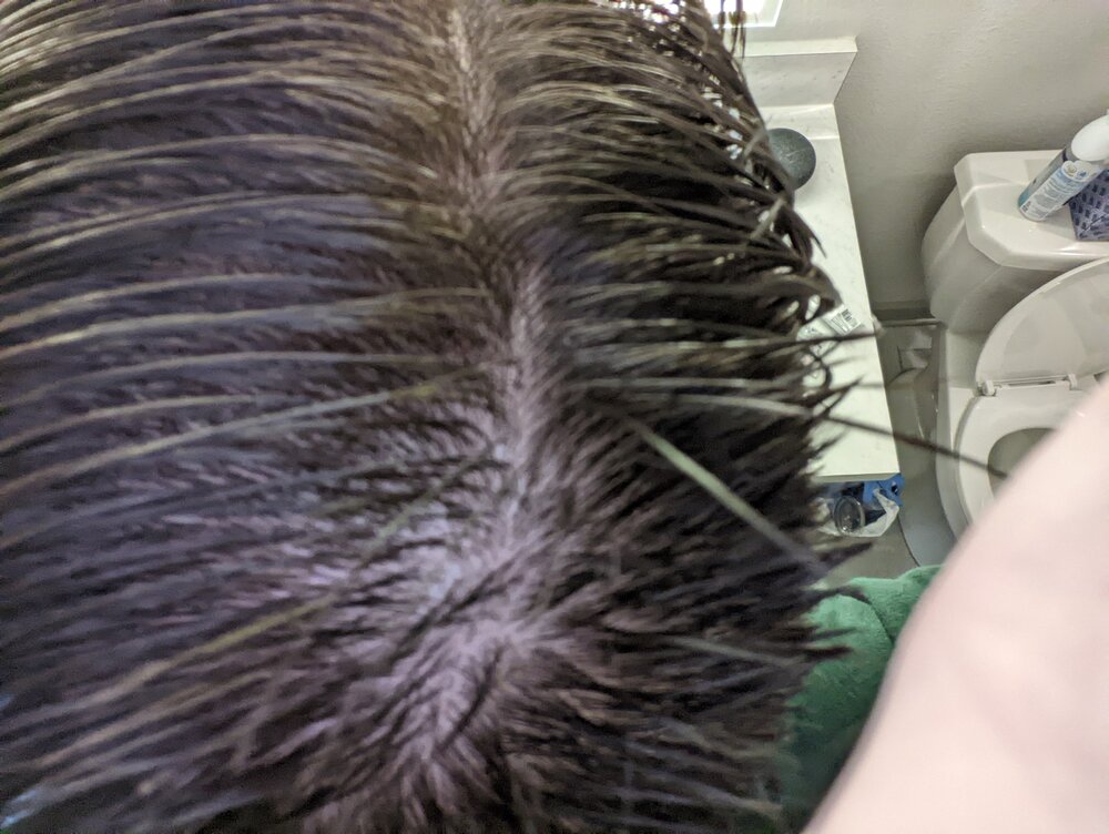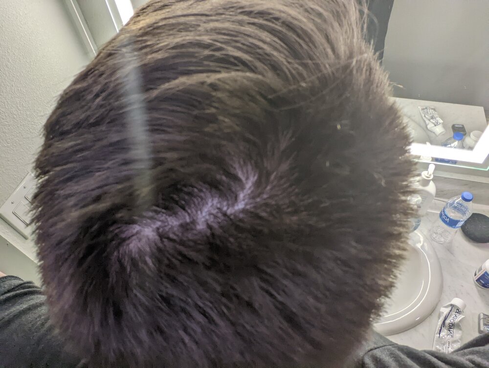 . I have several pictures, not all of them great, and the cut doesn't help either. Some pics are wet, some are dry, They are both after I applied Roagine, last minute idea to snap pics and bring them here.