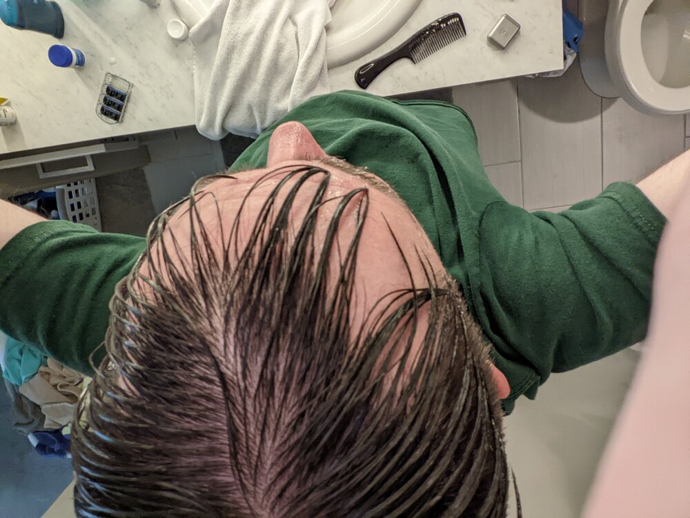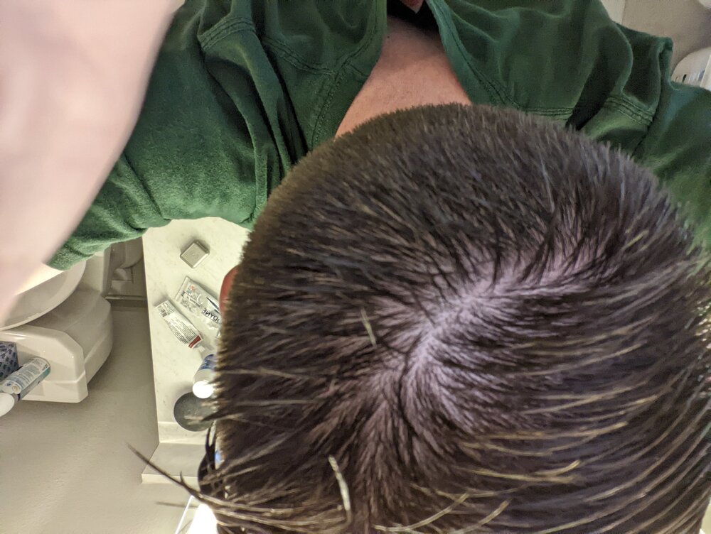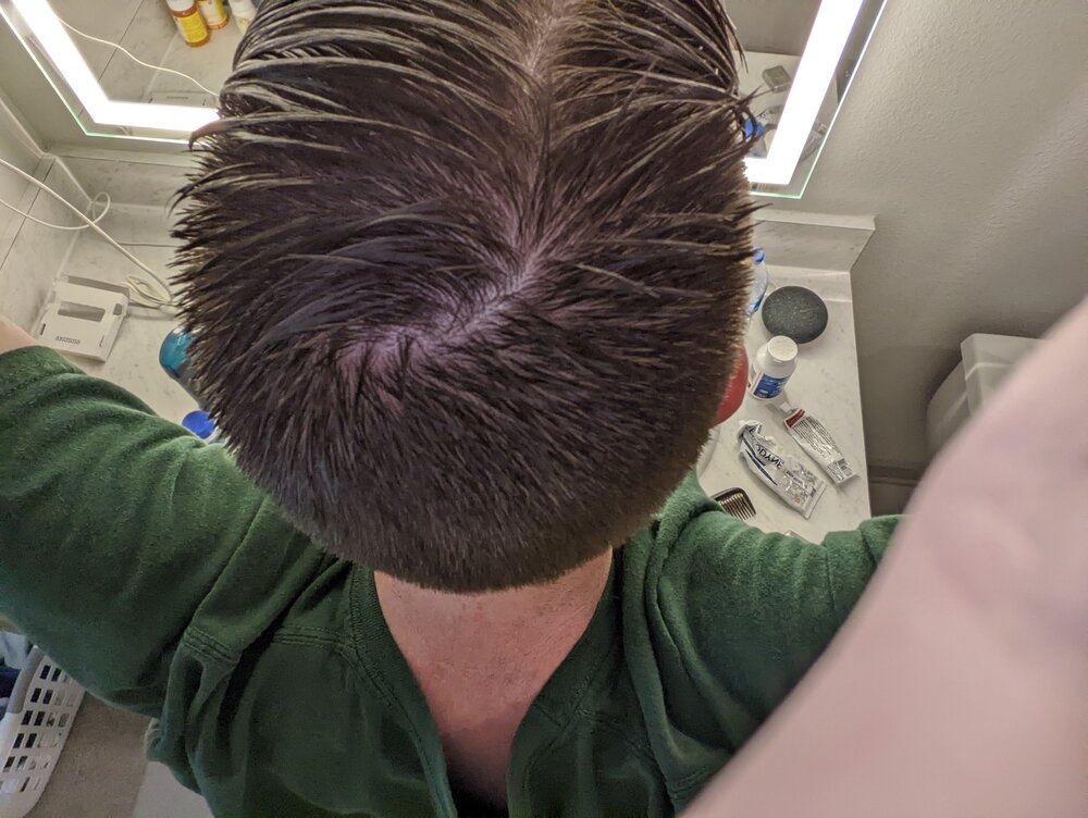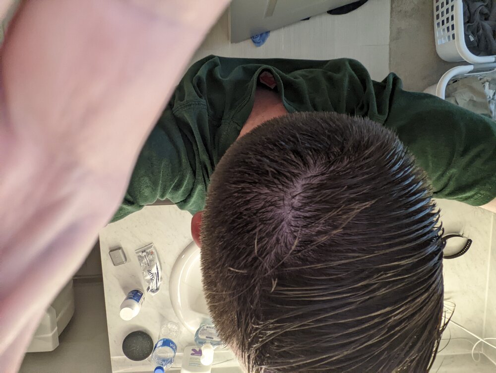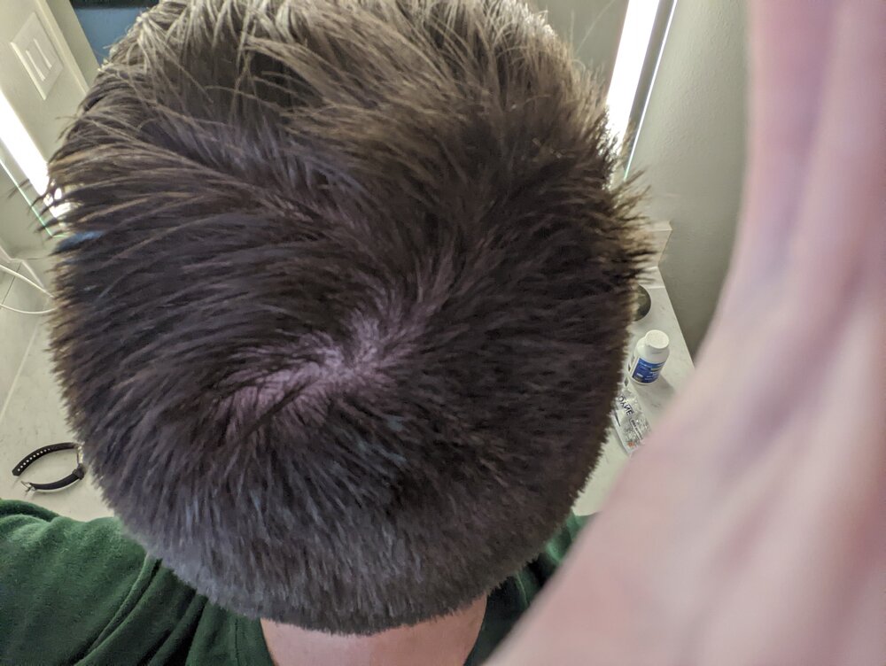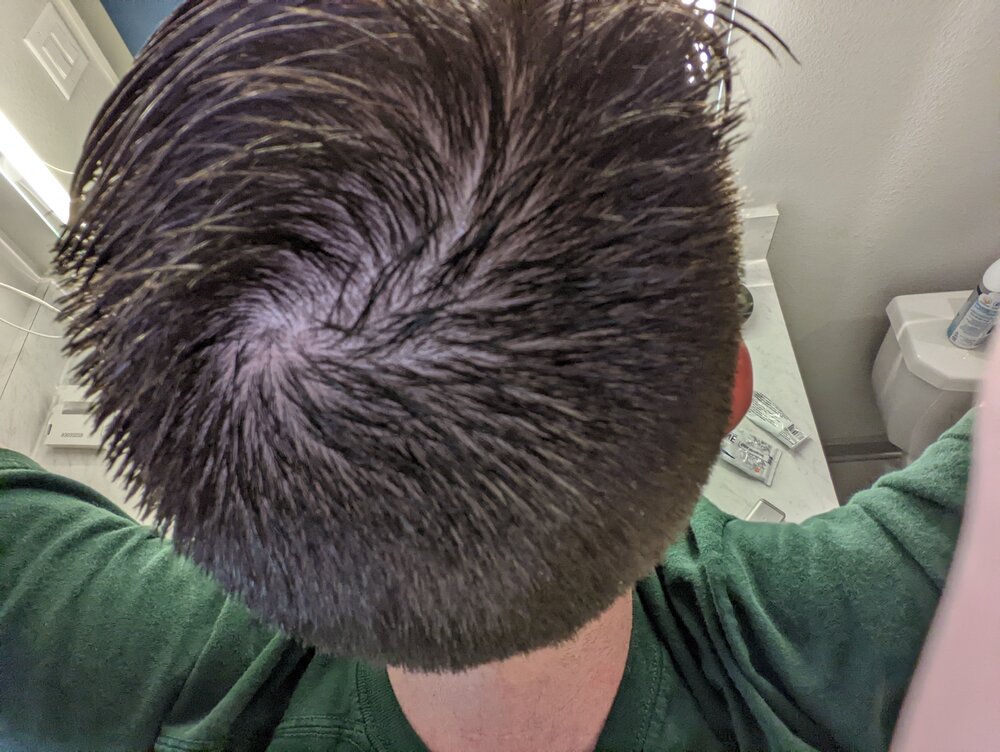I've never taken shots before but I had the barber buzz it up pretty high today. I know I have a whorl and fine hair, and I'm pretty sure father time is catching up with me
