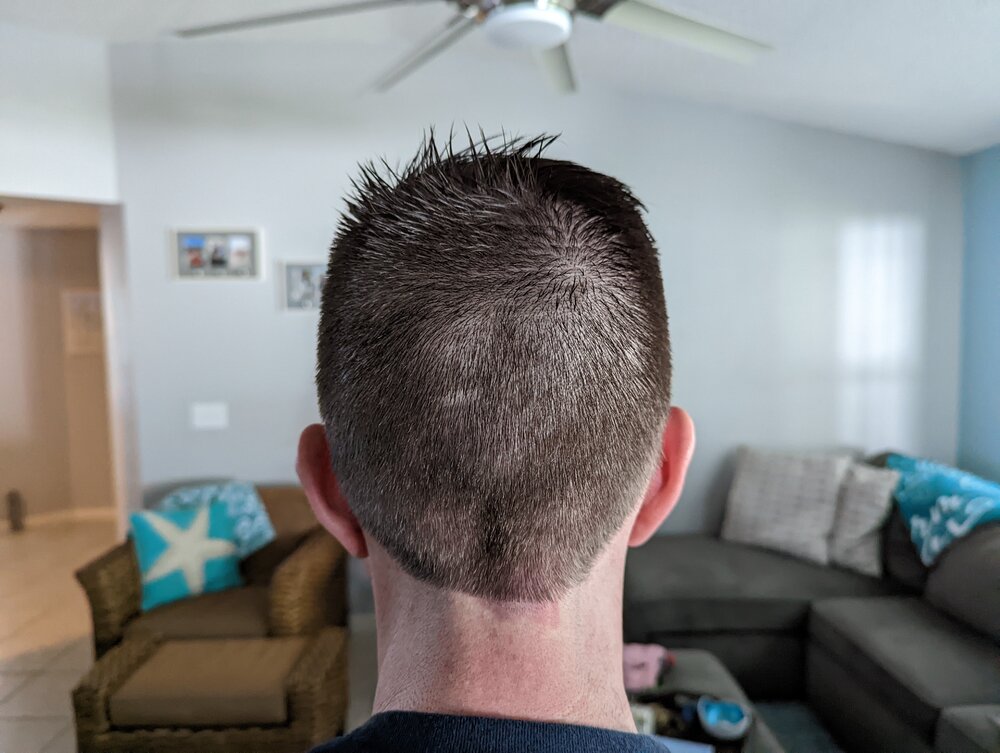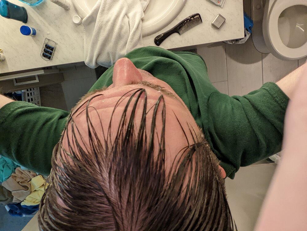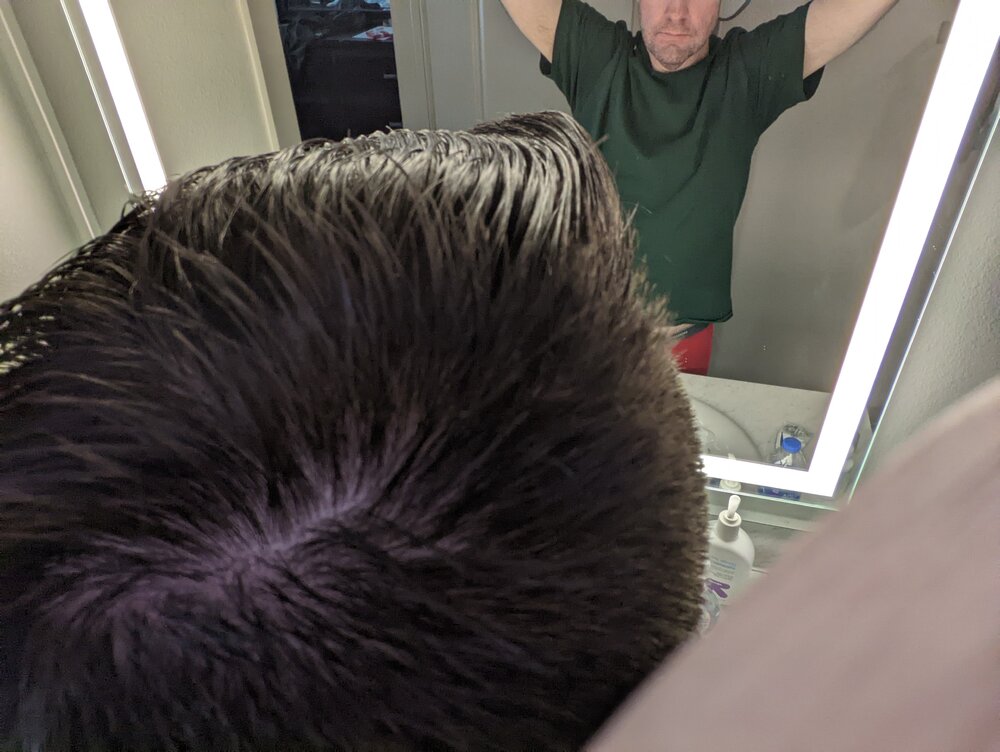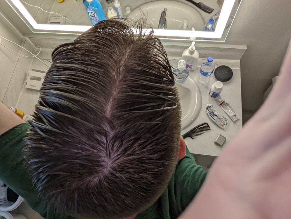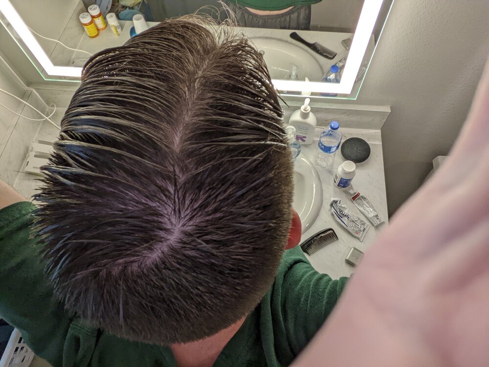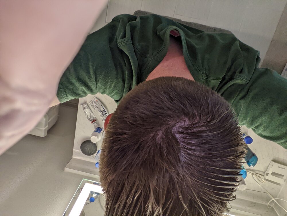 I've never taken shots before but I had the barber buzz it up pretty high today. I know I have a whorl and fine hair, and I'm pretty sure father time is catching up with me