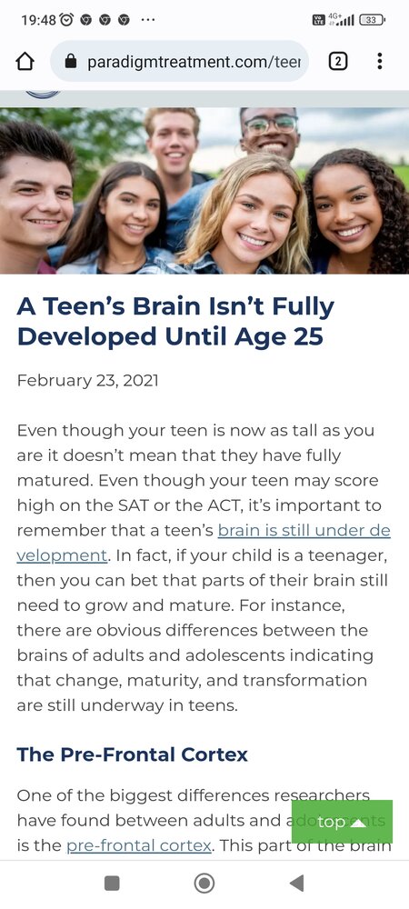I feel like I am fully developed, I don't think like teens do, in fact I was more mature than the average teen when I was 16.Read and weep.