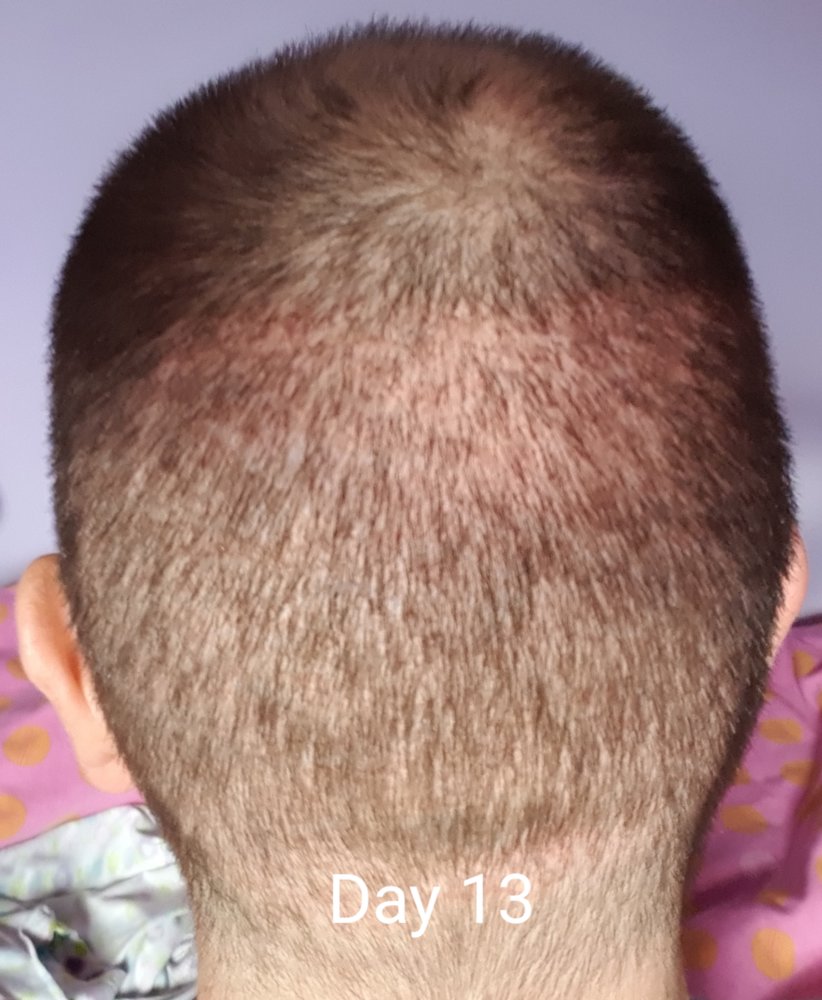 It's painful now in the donor area as all of the nerve endings are severed during the extraction so they're trying to repair themselves. Some have it worse than others. It's quite brutal taking the grafts out, but again you don't feel anything at the time. But once the effects of the anaesthesia wears off, it can be very sore. But the joy of having a hairline again makes it easy to cope with, believe me
