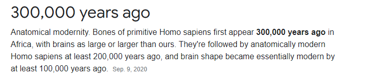 Any idiot can tell that this is plainly retarded. So humans evolved 300k years ago. But for some f*** all reason decided to jerk off for like 290k years before deciding to do any relevant sh*t