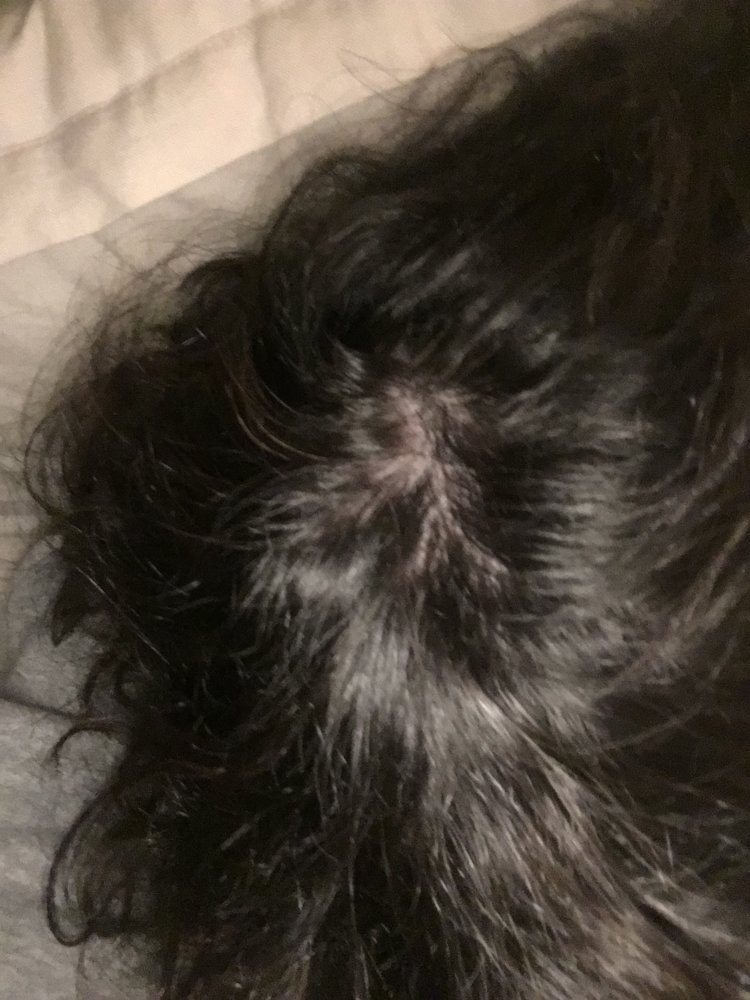 Now, I’m sure it looks really bad, but there are things that suggest I won’t go bald. Firstly, I have had this hairline since at least 12 years old. I don’t have any clear ‘before’ pictures, but they all show the same hairline and forehead. Secondly, the hair does not seem to be thinning on top. I do lose a LOT of hair in the shower, but my hair is about 6 inches long, which I’m sure is a big factor. I didn’t experience this earlier this year when my hair was short, but with the same hairline.