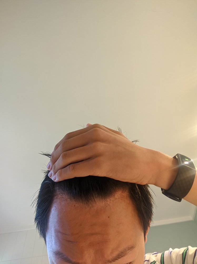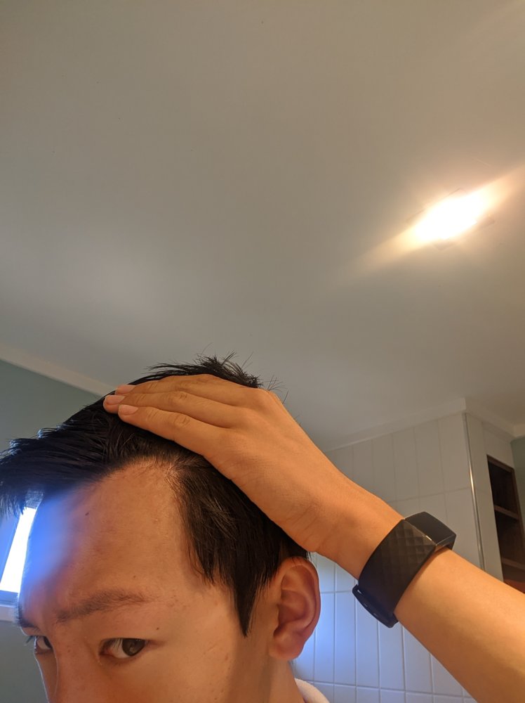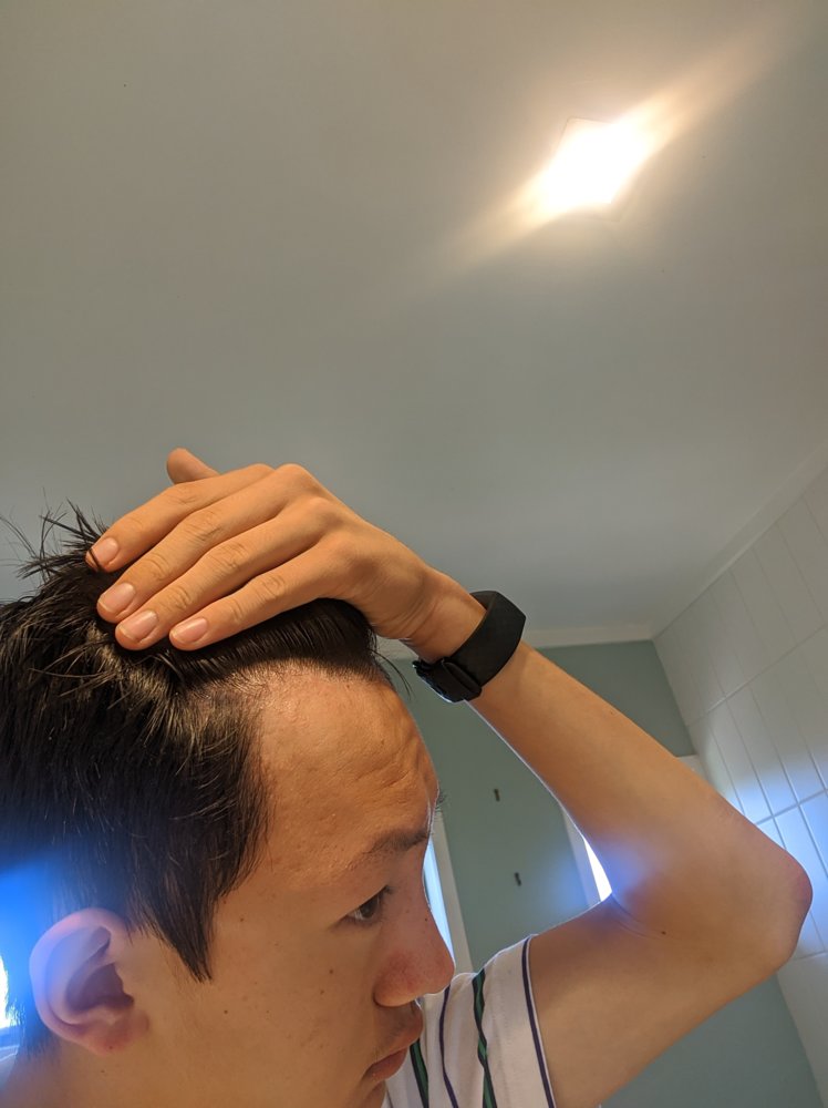 My hairline has always been quite high with a widows peak, but recently the front bit is thinning quite a bit. My parents won't take me seriously. What'd I do? Could scratching cause this or is it male pattern baldness?