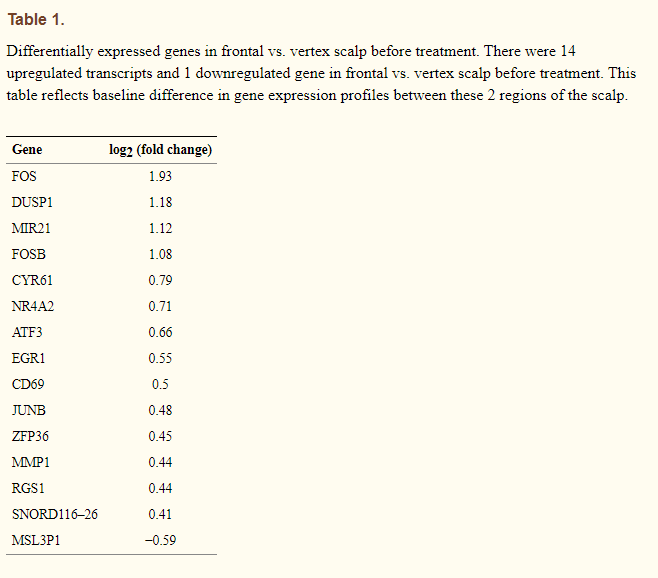 Which means it could be very effective for frontal baldness, right?14 genes were found upregulated in frontal vs vertex scalp. At least 10 of them are upregulated by PRLR signaling, and 2 others induce prolactin secretion.