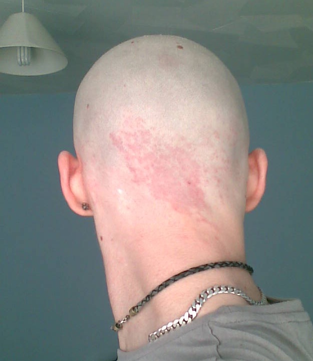 Lol blue scalp? I'll have a read up about them I guess but unless they are DHT inhibitors then they won't do much for me. It doesn't feel sore or anything, I have bad dandruff though, REALLY bad. Maybe the spironolactone doing that I dunno.