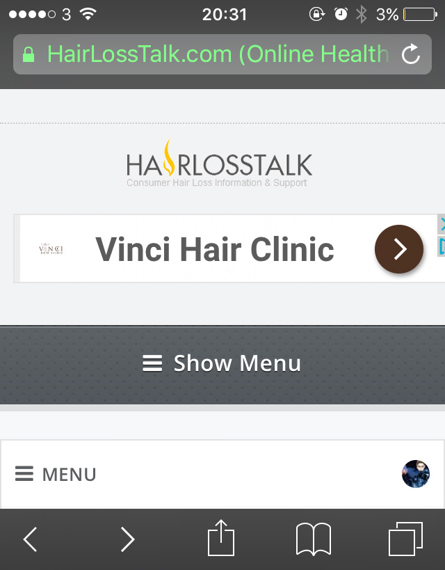 when im using my iphone to browse here, a big 'hairlosstalk' hits me when the page has loaded, and everytime i load a new page after