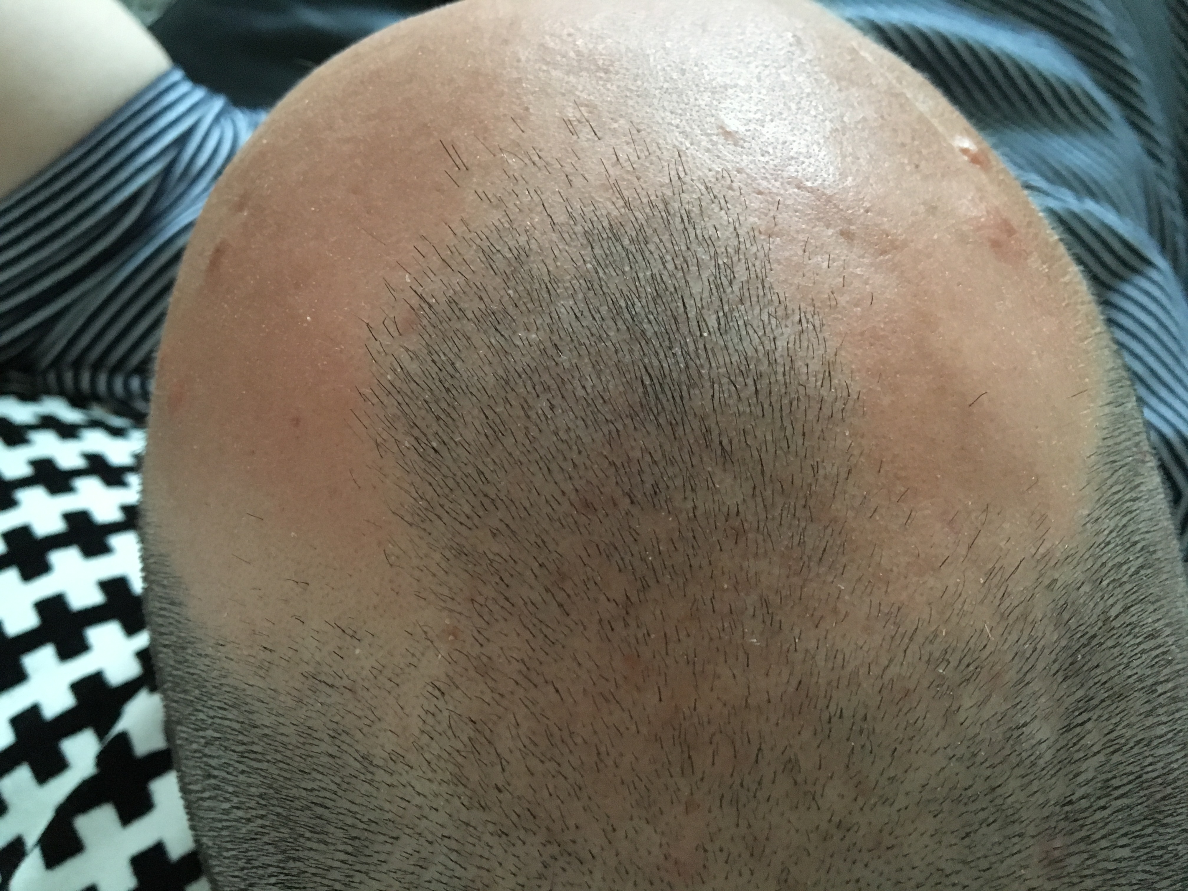 Anyway I have just buzzed it down and you can clearly see which hairs are miniaturizing and the hairs beneath the skin which may have a chance. You can also clearly see the slick areas which may have no hope in hell.