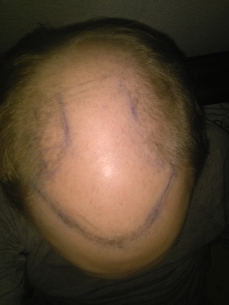 I am really not sure about this as you can see my hair is very thin but my donor, I guess it's ok. I draw a new Hair Line to let you know what my expectation is.