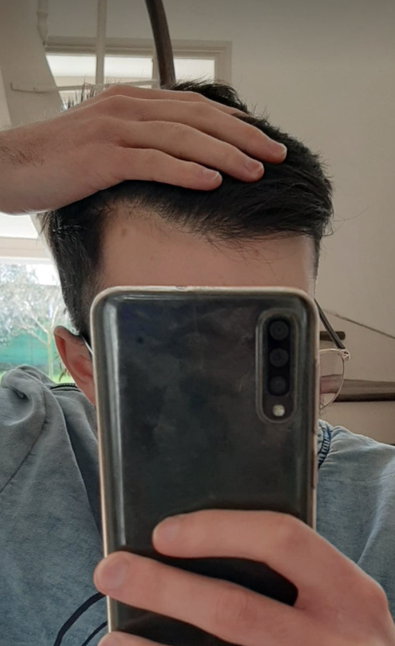 Can you see how the scalp can be seen deep into his hair creating a ‘chewed up’ look. This is when you should become worried.