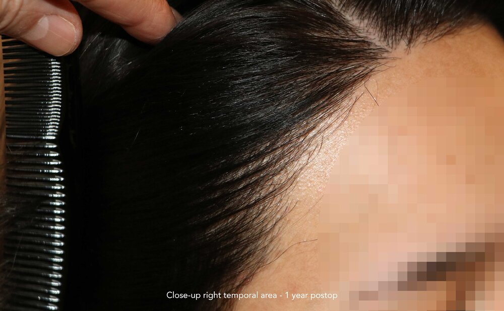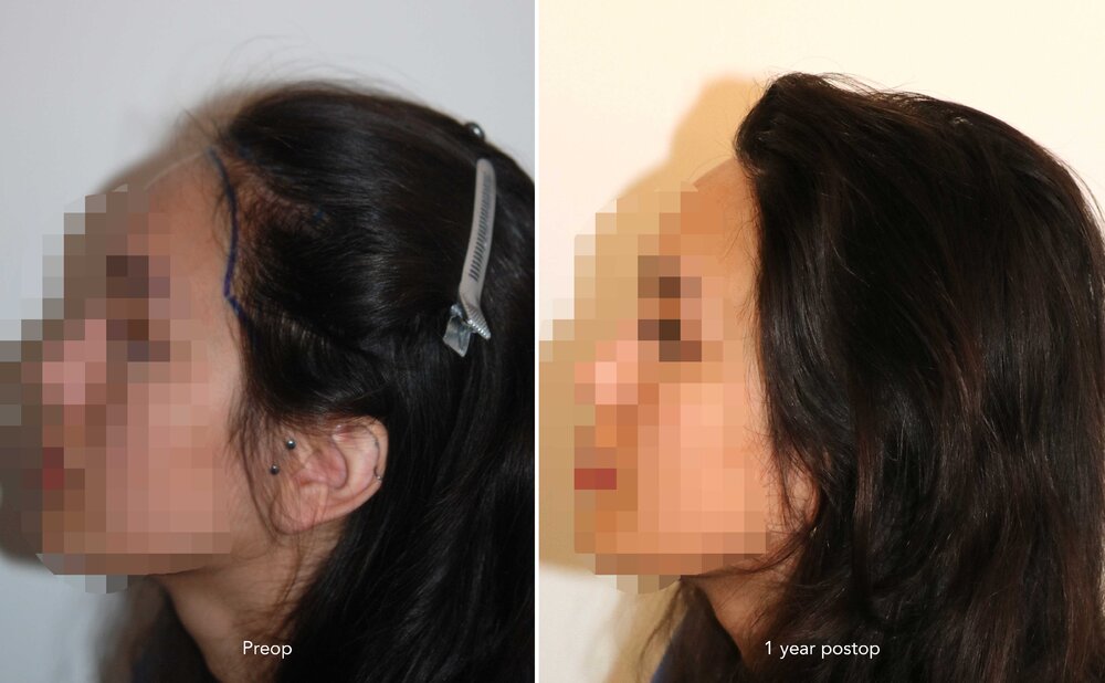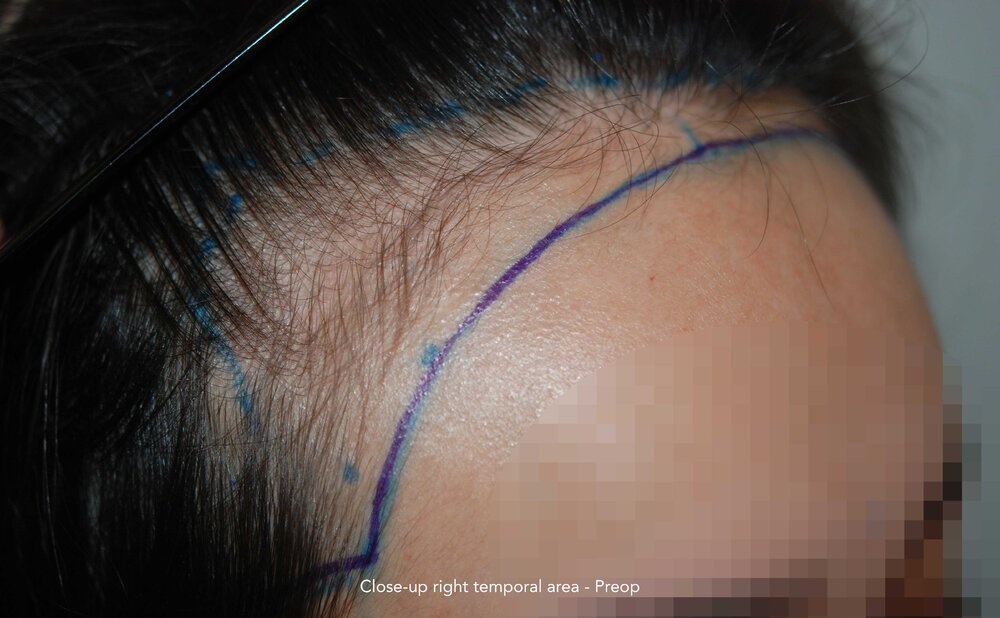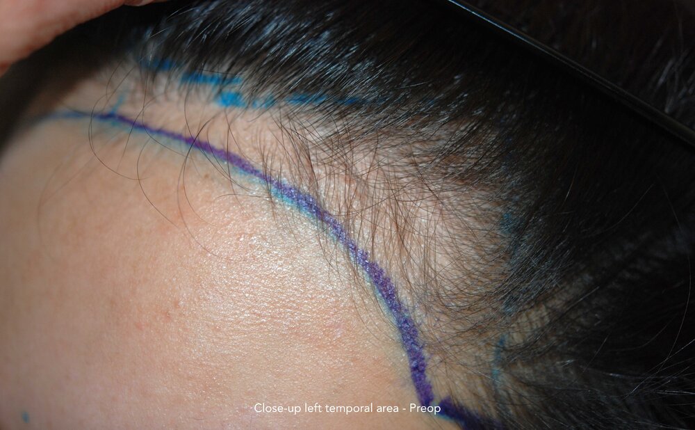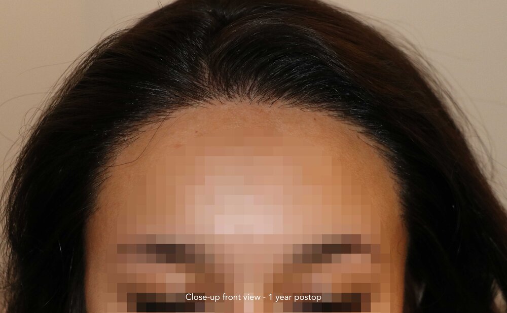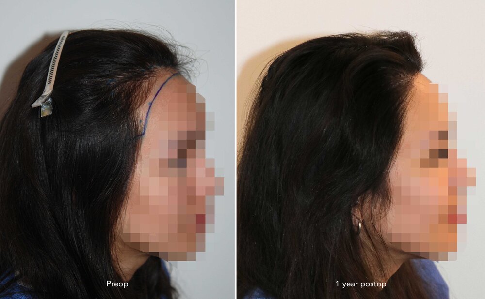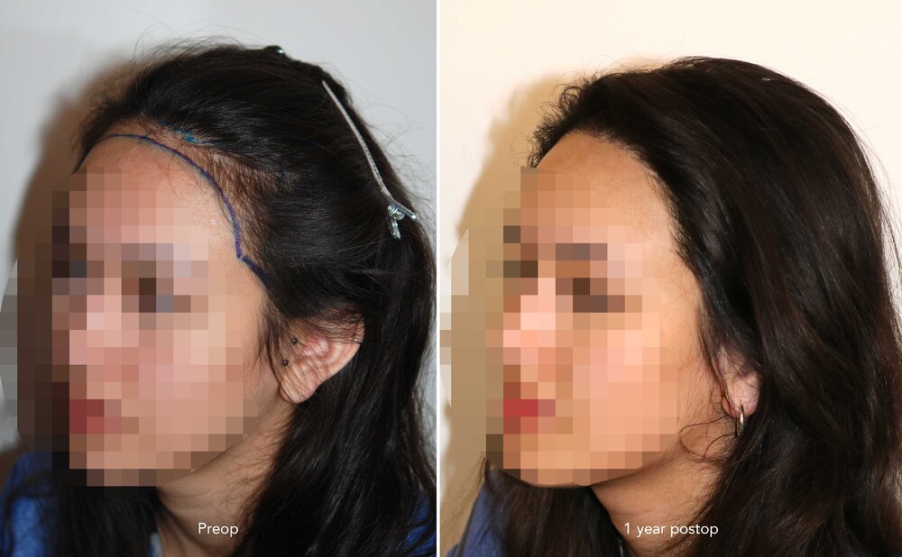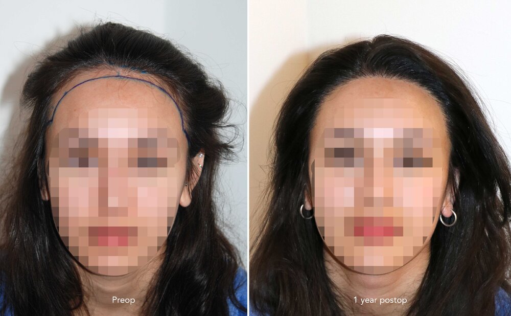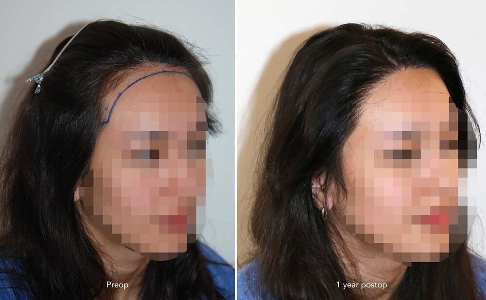 Follicular Unit Extraction to lower and attain an aesthetic reconstruction of the hairline.