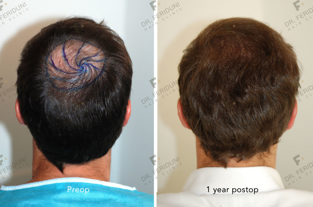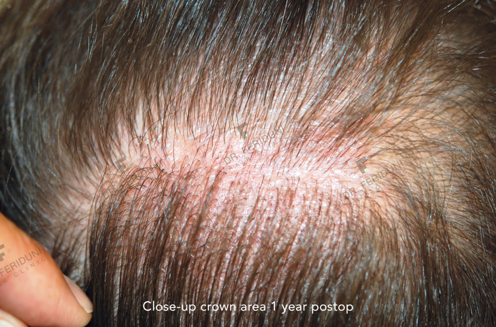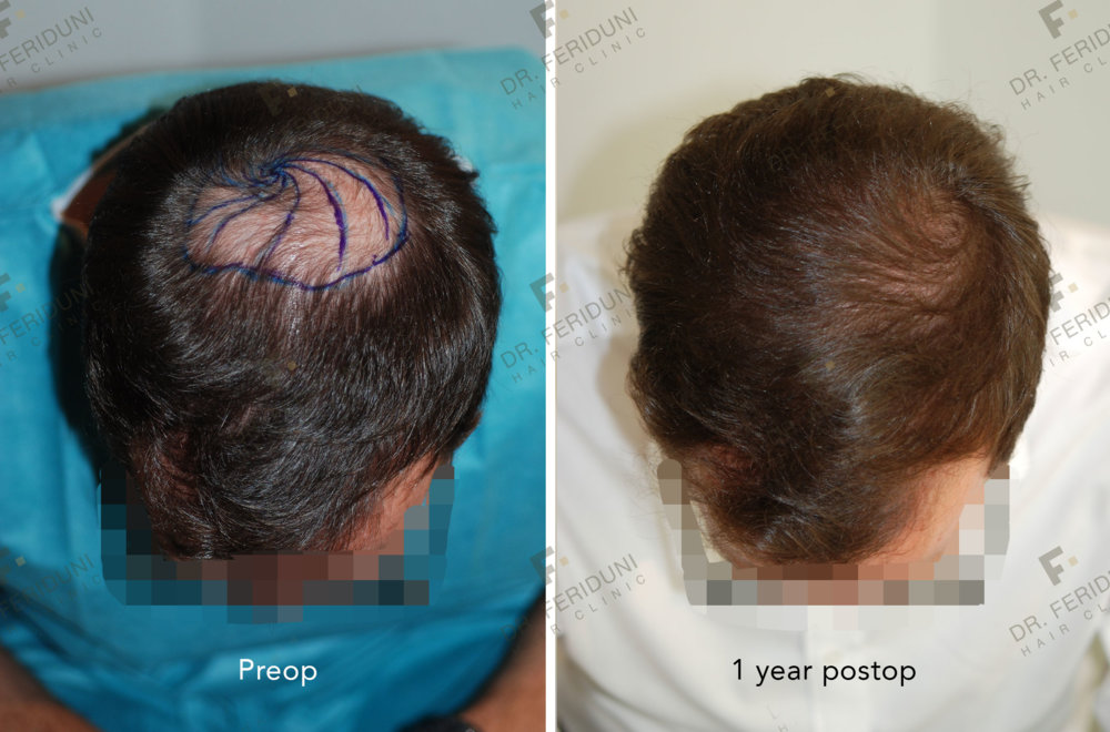 Follicular Unit Extraction to attain an aesthetic reconstruction of the vertex area.