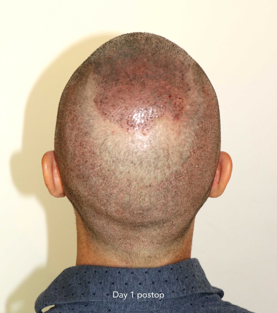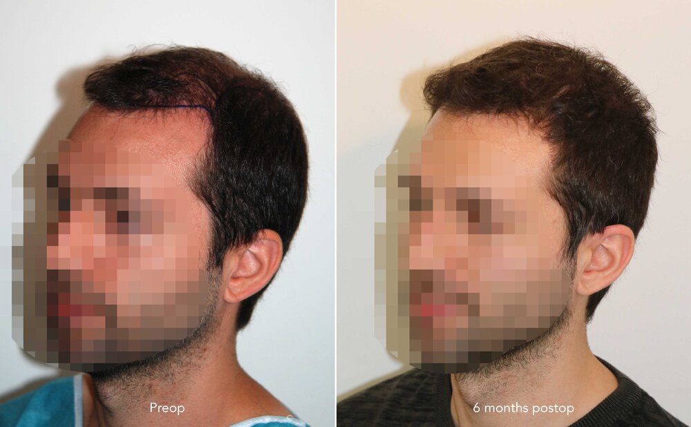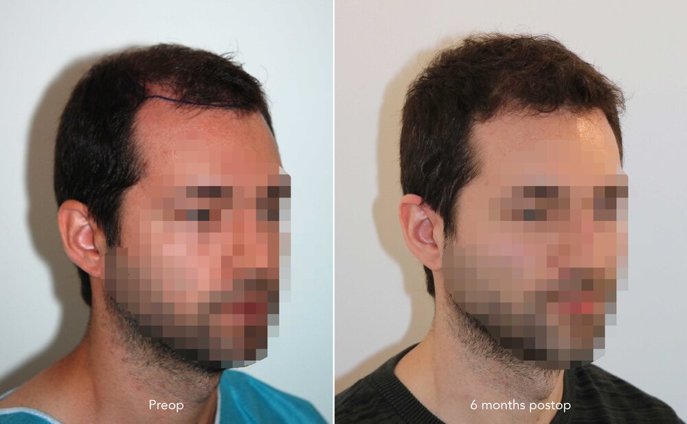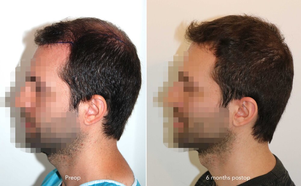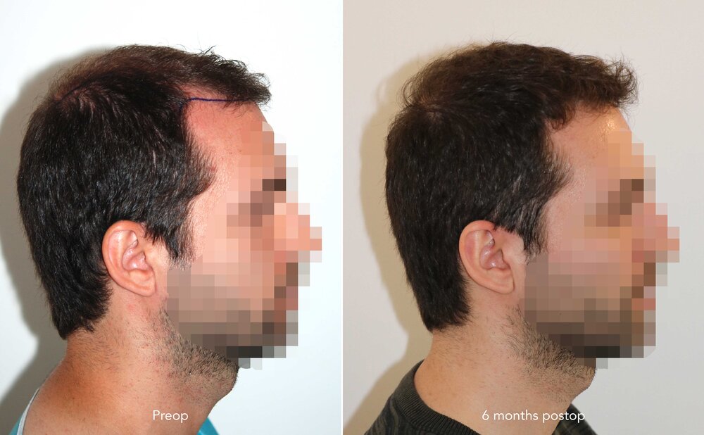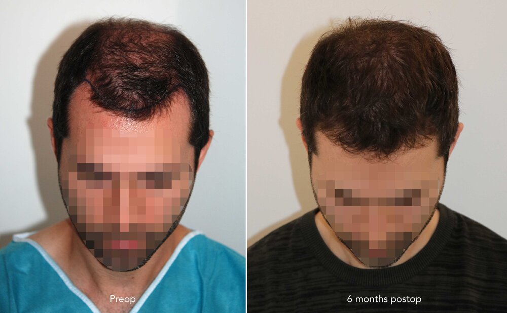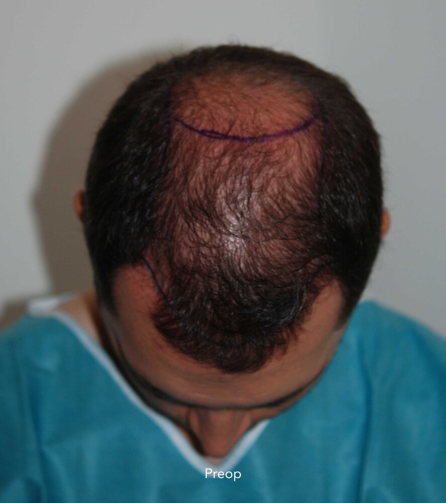 Follicular Unit Extraction to attain an aesthetic reconstruction of the midhead section and crown area.