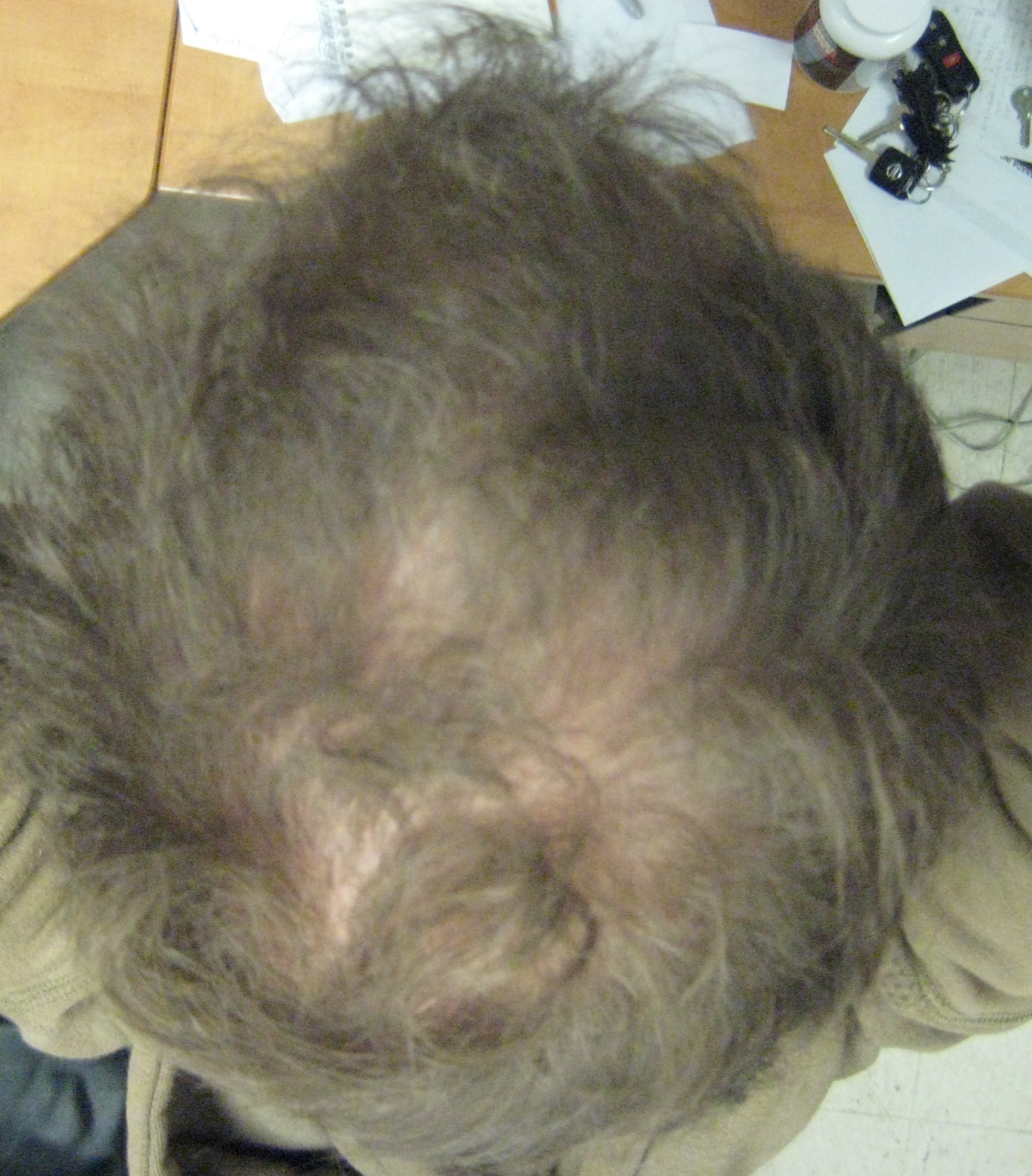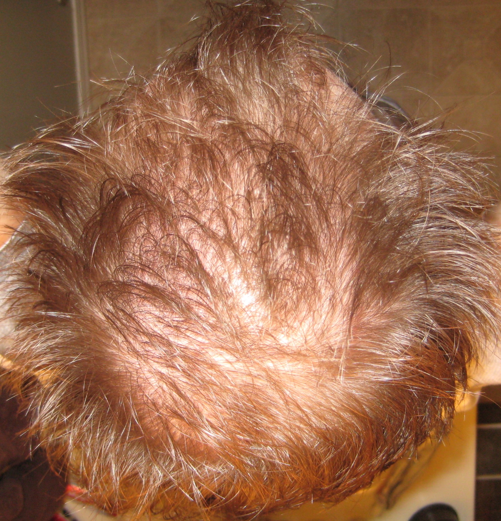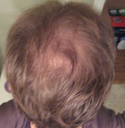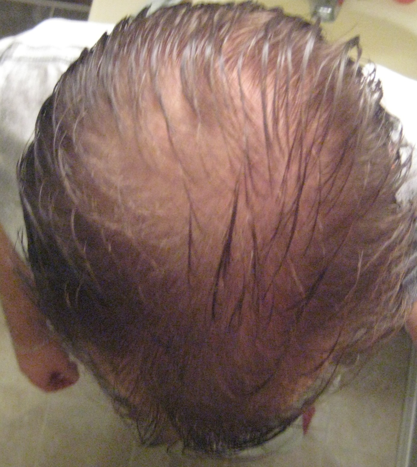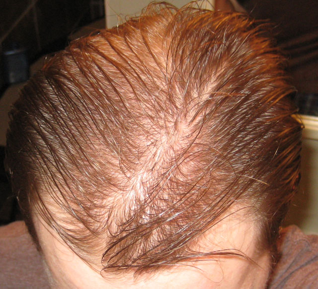 btw. im newly 24...ive always had a bit of a high hairline it hasnt seemed to move much since i was young.... mostly noiced thinning in the crown area... my dads side has all their hair.. my moms side doesnt.. my moms side also has really fine hair.. even the women.