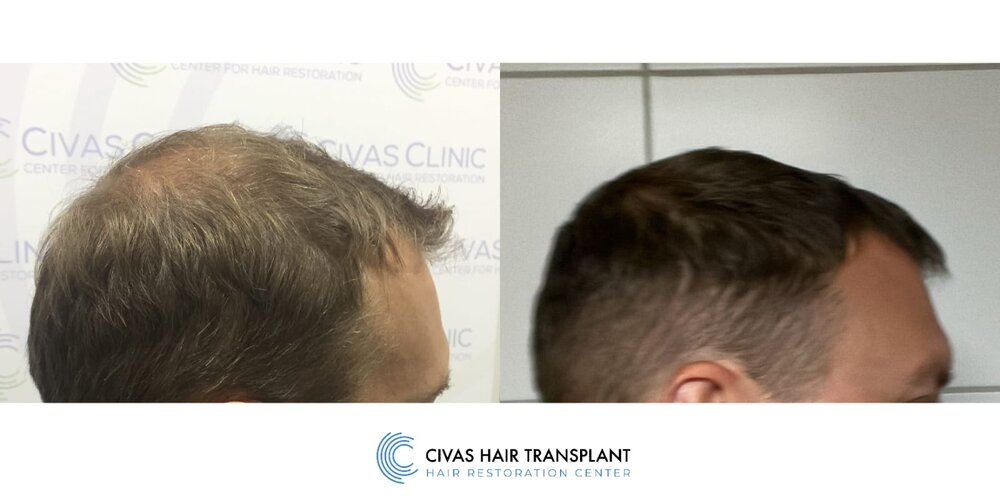 This patient had an FUE Hair Transplant at Civas Hair Clinic. The procedure was performed by Associate Professor Ekrem Civas, MD, MBA, FISHRS and Dr. Ümit Akpınar, Dermatology Specialist, Hair Transplant Surgeon
