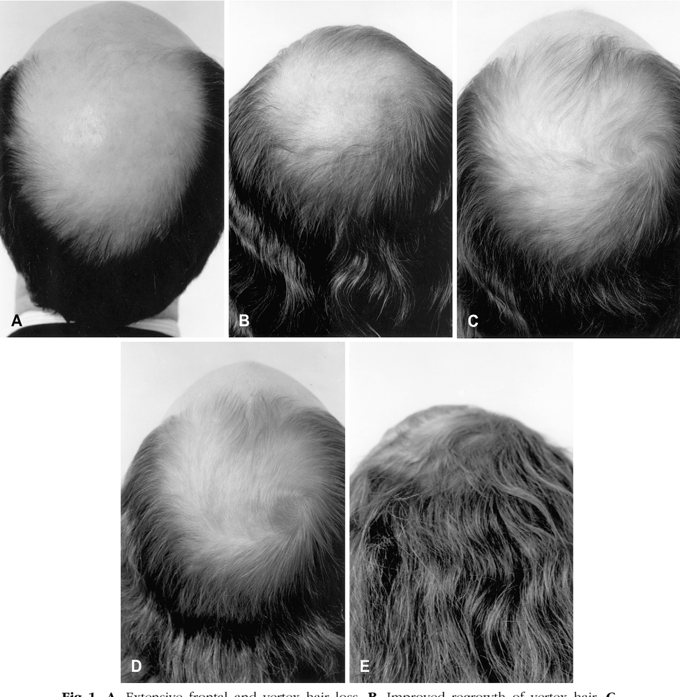 Androgenetic alopecia (Androgenetic Alopecia) is a nonscarring pattern hair loss affecting both sexes. There have been no previous reports on significant response to medical treatment. Here, we present a sex reassignment patient on estrogen therapy who experienced full hair regrowth over completely alopecic scalp.