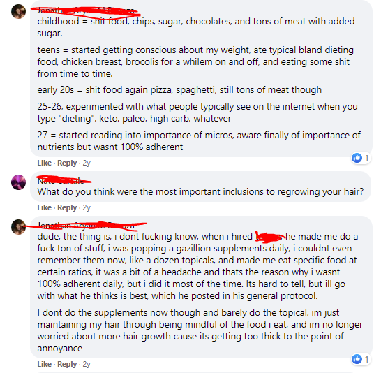 Why is that the case (diet)? Surely the topical estrogen and keto you're using plus dermarolling are big players? Most people say that diet can't affect hair loss?