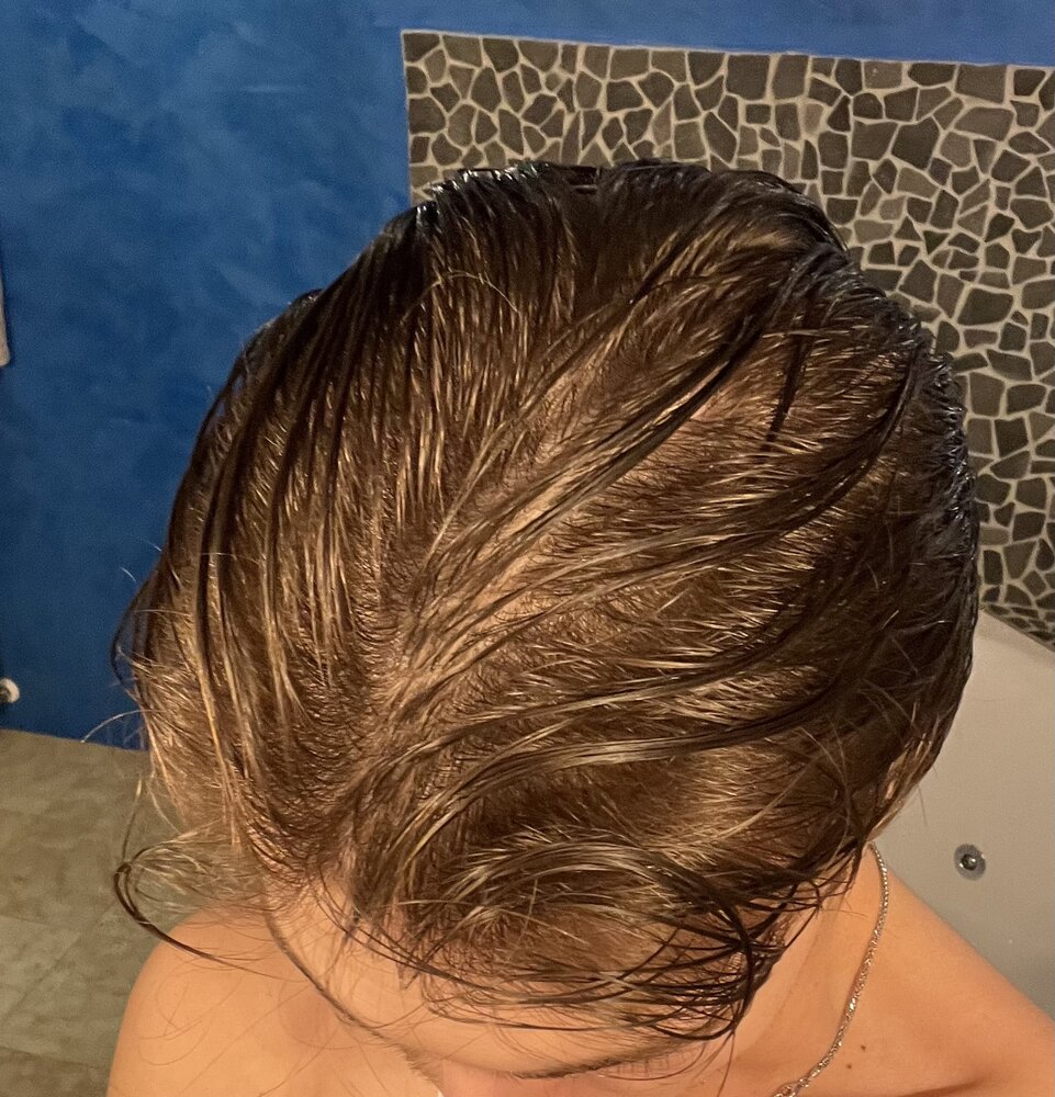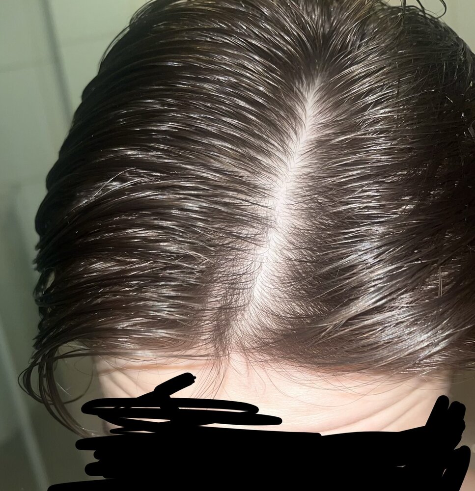 So one and two are freshly shampood. On the first one you can really see my scalp shine through. I have no idea if its normal or not.
