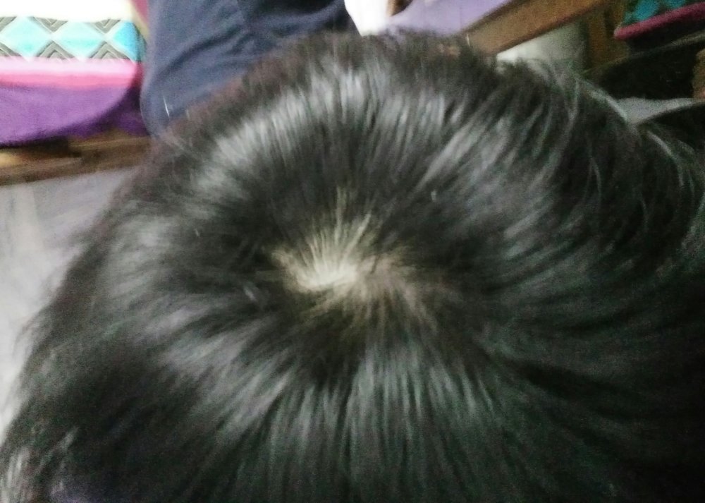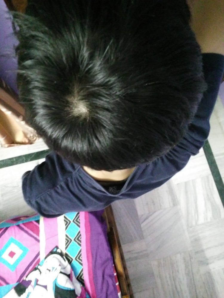 Have dense hair since childhood. Noticed what looks like bald spot on top. As much as I Remember, my hair has been like this since a long time. Is this due to my hairstyle or something or could this be baldness? Hair normal and dense everywhere else, just little less in temple region, but on research, I found most people had it. Can anyone confirm if this is normal? I'm very stressed and suffer from anxiety. I'm 17 btw