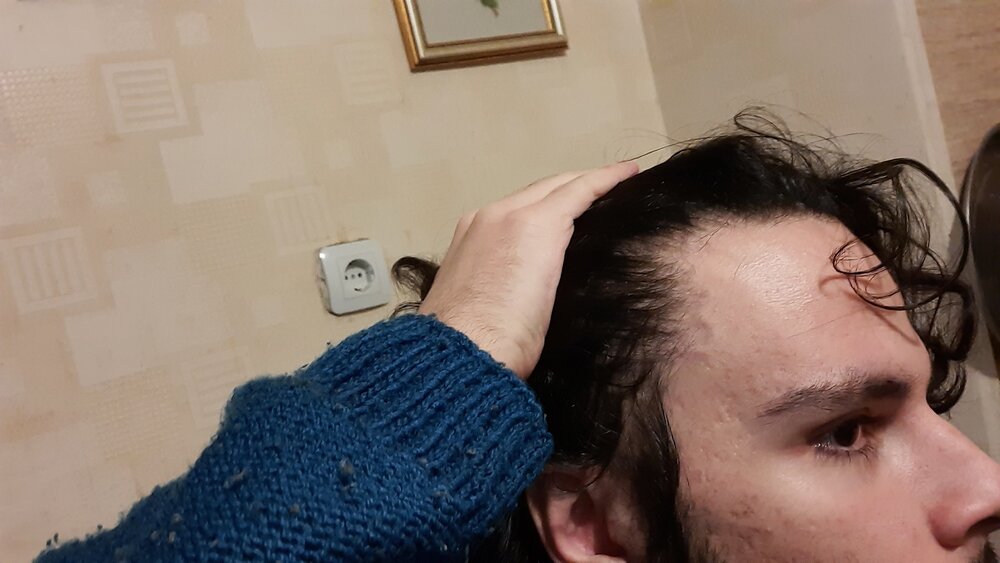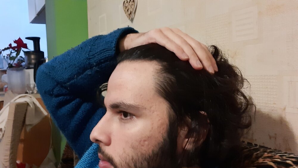 The left side has thinned but the right temple remained the same in shape with the same round inclination. I think that my face is too proportional to advance from Norwood 1 to Norwood 1.5. It's an example of extreme facial symmetry and solidity.