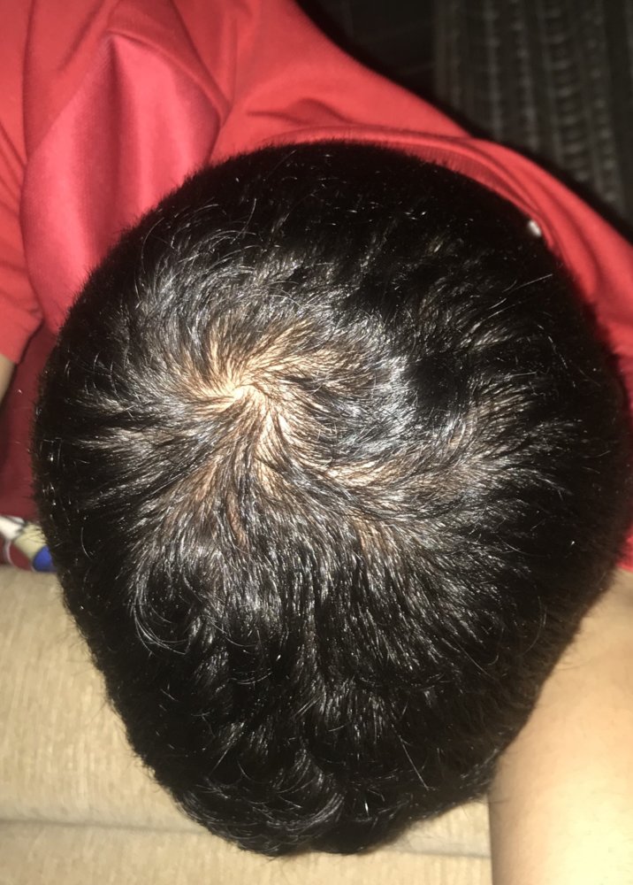 Recently had my hair cut short. Is this a hair whorl or is this diffused thinning?