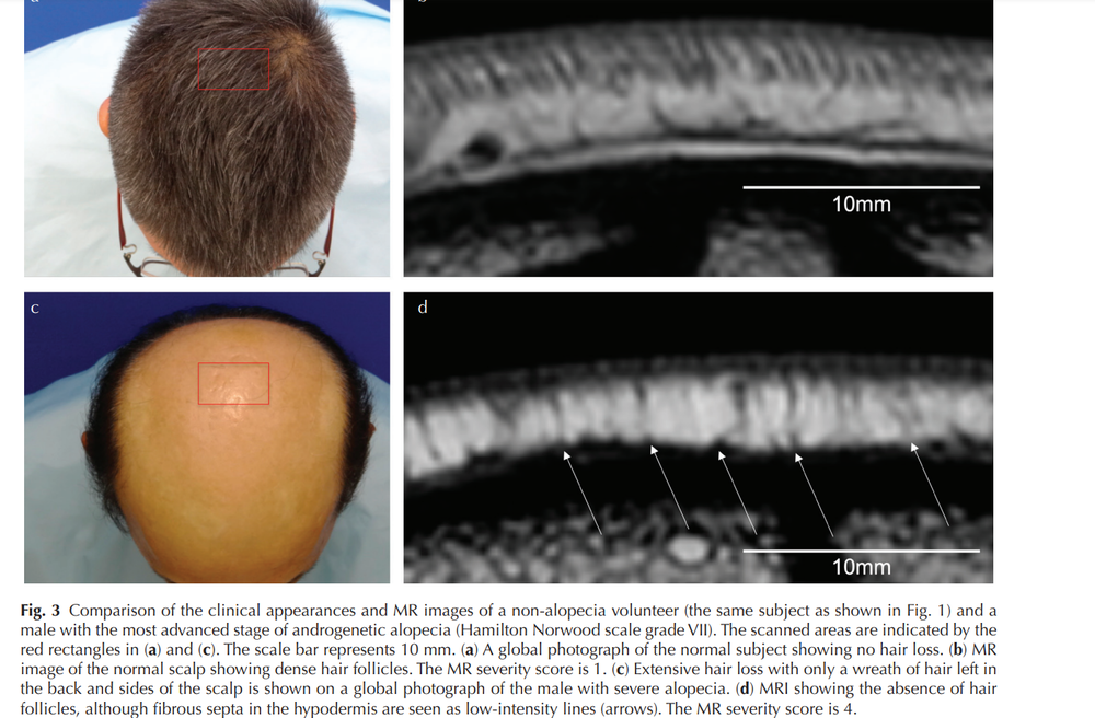 So the fibrotic and hard, slicky look in severe Androgenetic Alopecia = the bony layer expanding at the expense of the loose, cartilagenous layer