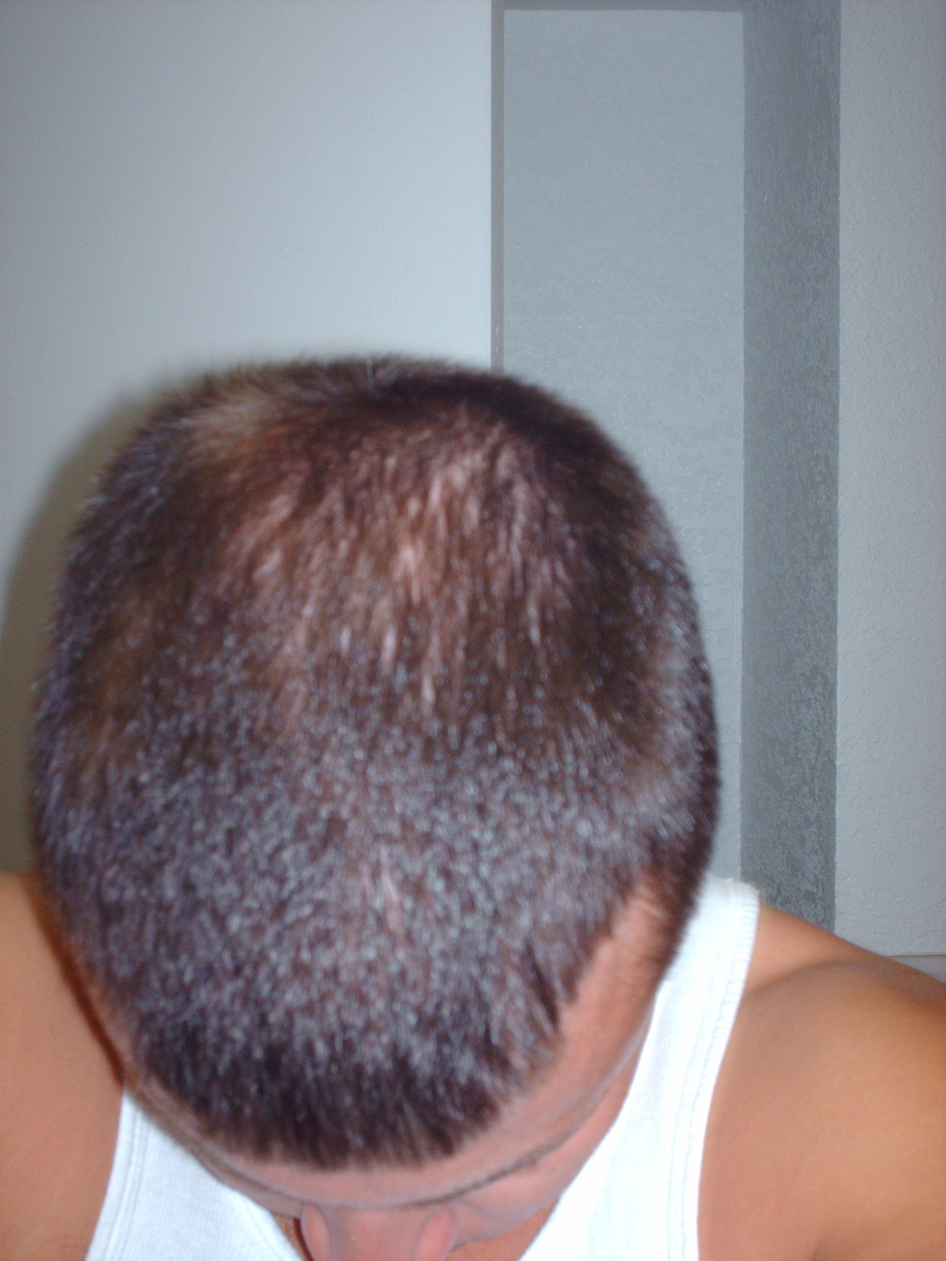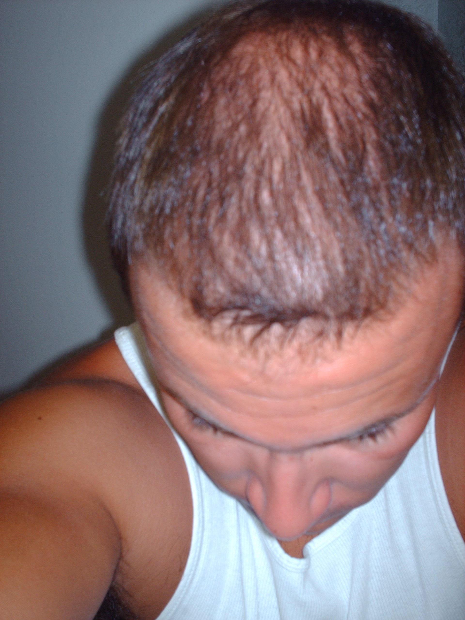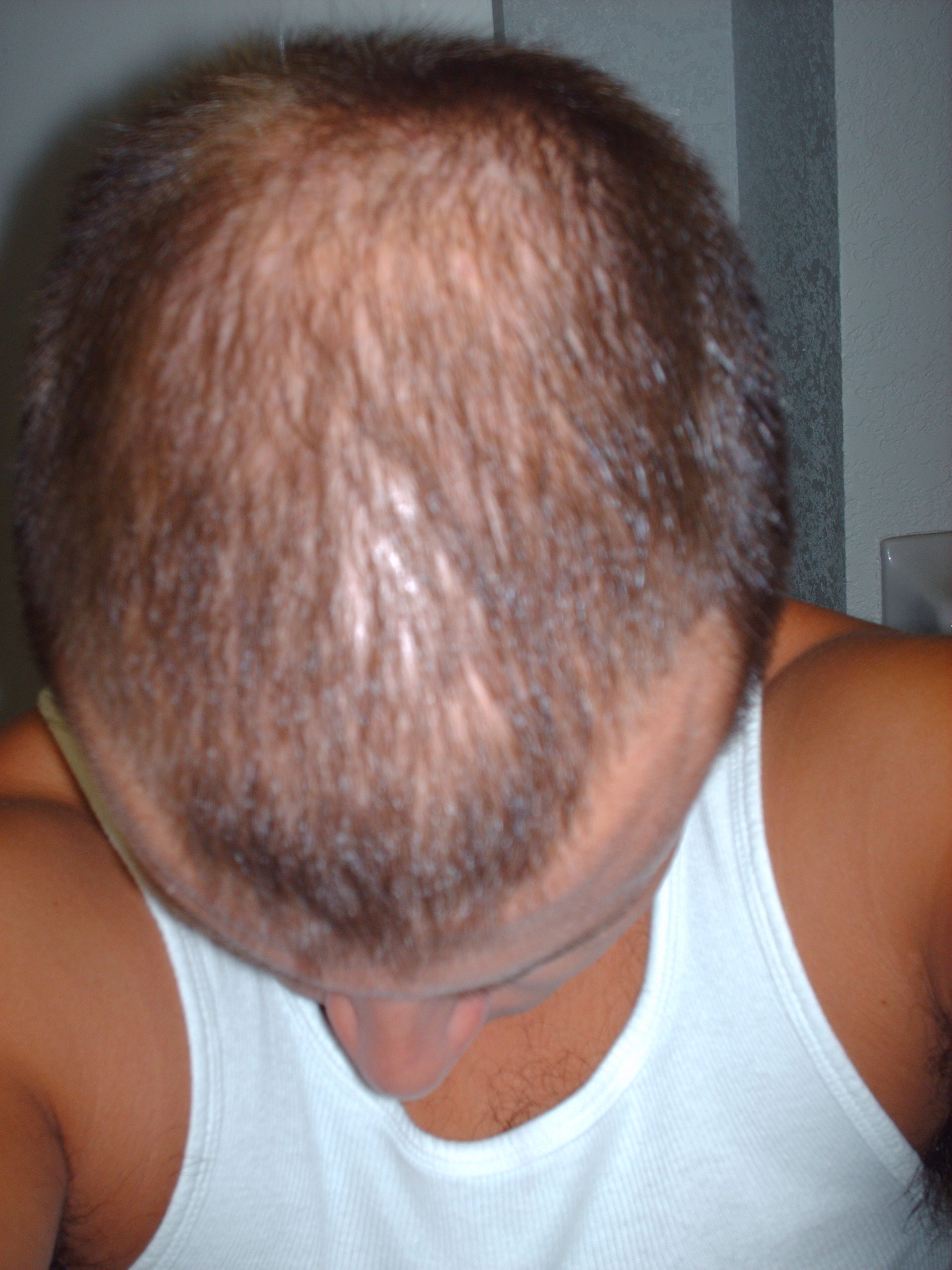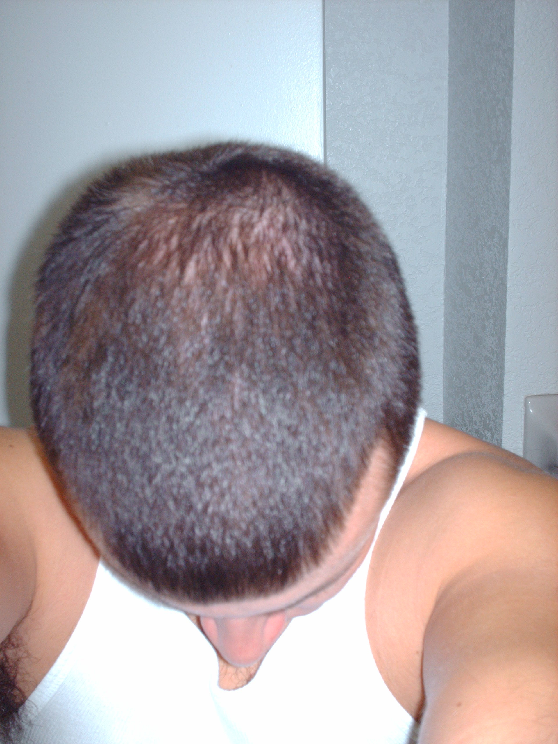 First of all, I would like to thank everyone that has contributed to this forum for their experiences and encouragement in dealing with this curse. Every time I felt like I needed some support, I read the success stories and could relate to guys in this position that I have been dealing with for the past 10, yes I said 10 years. I am currently 28 years old and I noticed I started loosing my hair at the young age of 18. My temples went rather quickly and then my hair on top began to slowly thin for the next 10 years. I lived in denial for a long time since the process was so slow. After doing some research on this site, I started the Big 3 on 8/25/08.