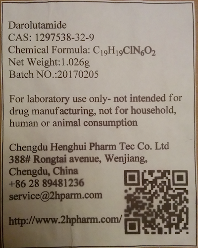 - "darolutamide" 0.01% 1ml (1mg) in K&B solution every day and a half