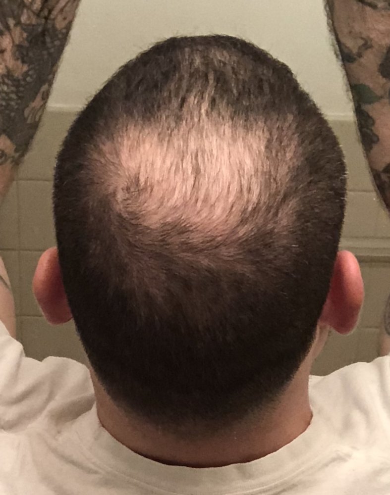 I’m 38 years old and have been slowly losing my hair for the past 10 years. I haven’t noticed until recently because I let my hair grow out after 10 years. I have always buzzed my head though even when I had hair because I liked the look.