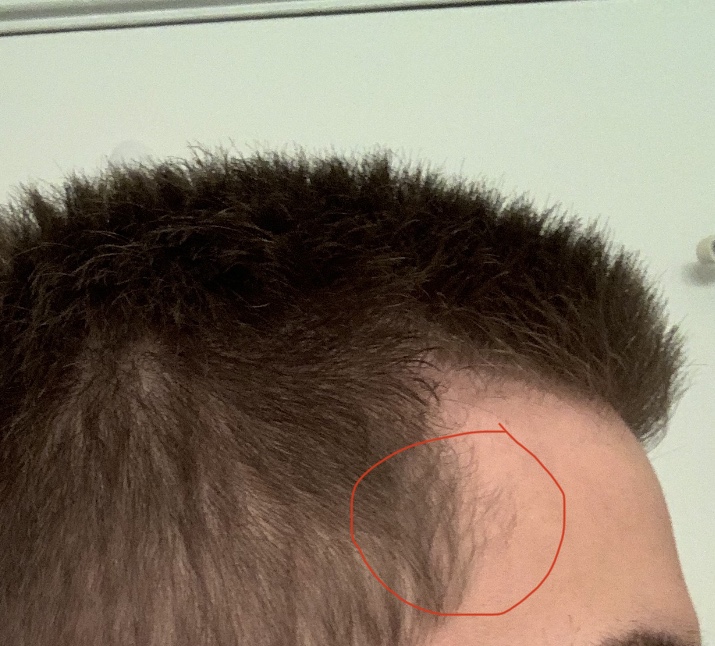 Does it look like these are hairs that just never really grew in fully? or is it just recession? i honestly can’t tell. seeing a dermatologist on the 21st.