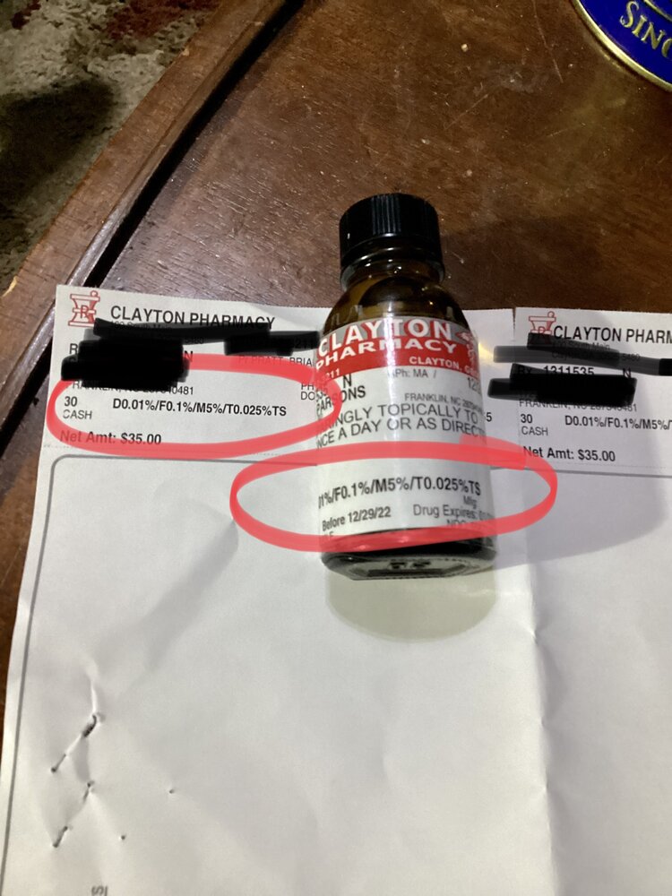 My family general practitioner doctor prescribed this medicine and sent it to a compounding pharmacy. I have no idea what’s in it and no paperwork came with it. I was seeing the doctor for something completely unrelated (annual blood work/checkup and an Ambien refill) and while he was looking over my chart he was shocked someone my age would need Avodart. I told him it was off-label for hair loss and I didn’t use it for prostate issues. The rest of the unrelated visit went by and on his way out of the door he said he’d call in a script to a compounding pharmacy for some hair growth tonic. He never actually told me what’s in it and he was so rushed he was gone without me getting a chance to ask. Can any of you provide any insight?