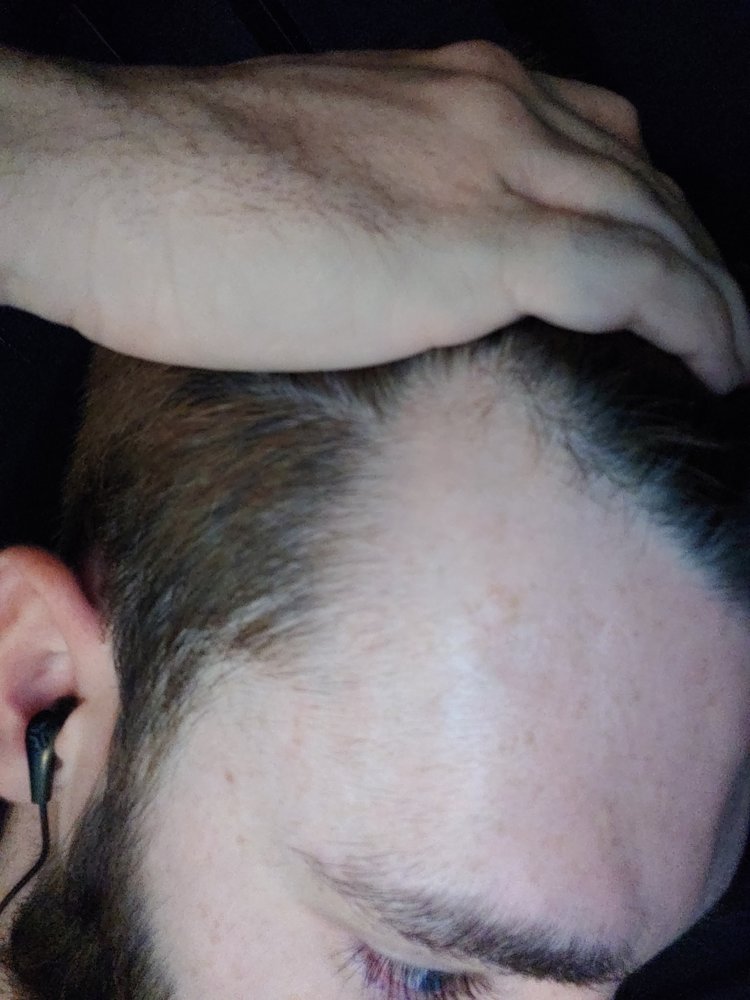 The first photo is flipped for some reason, but it's the same temple. I'd really like to know if this is good or bad. Only on month 2 of finasteride and I'm really f*****g scared about losing my hair