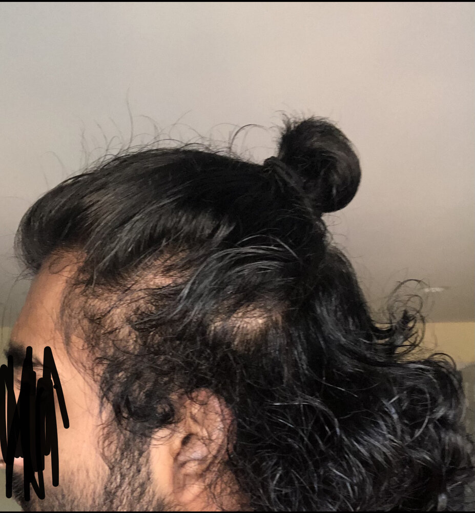 I’ve been growing my hair out and have noticed that my thinning is becoming more and more noticeable, currently almost 2 months on finasteride as well so maybe the shedding phase has started and is accelerating the thinning look. What would be the best move to make it less noticeable? Ive attached some images to show where my hair is at rn. The thinning is noticeable in harsh lighting at the very front of my widow’s peak and in moderate lighting on top of my scalp but is unnoticeable elsewhere unless I tie my hair up.