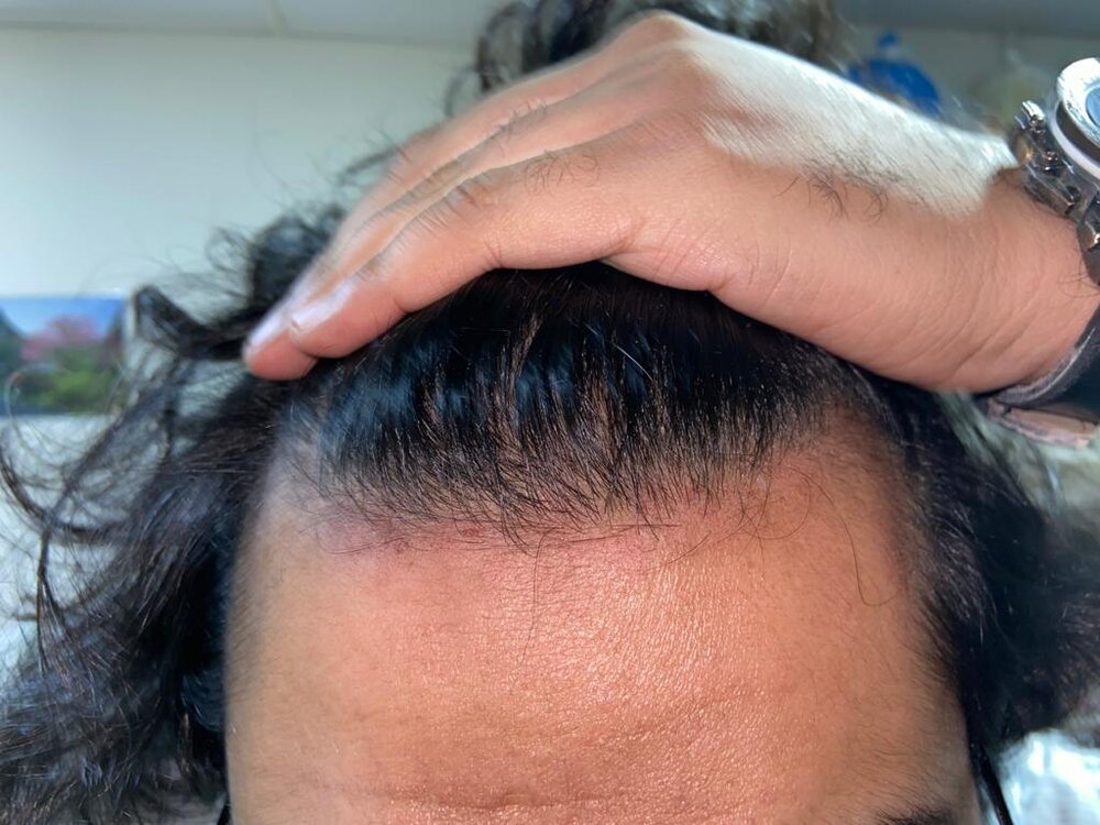 I have been doing Dermarolling for 1 week, that's why my skin is bruised.I am 23 years old, does it look like my frontal hairline thinning ??View attachment 161212