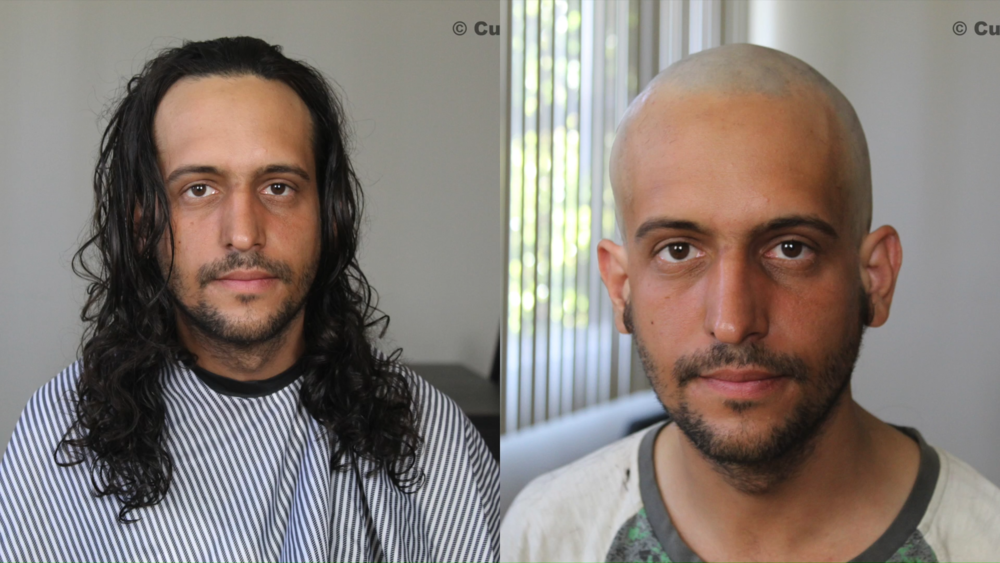 Look at this man and how uneven and how ridged is his scalp. Looks pretty similar to baby with craniosynostosis.