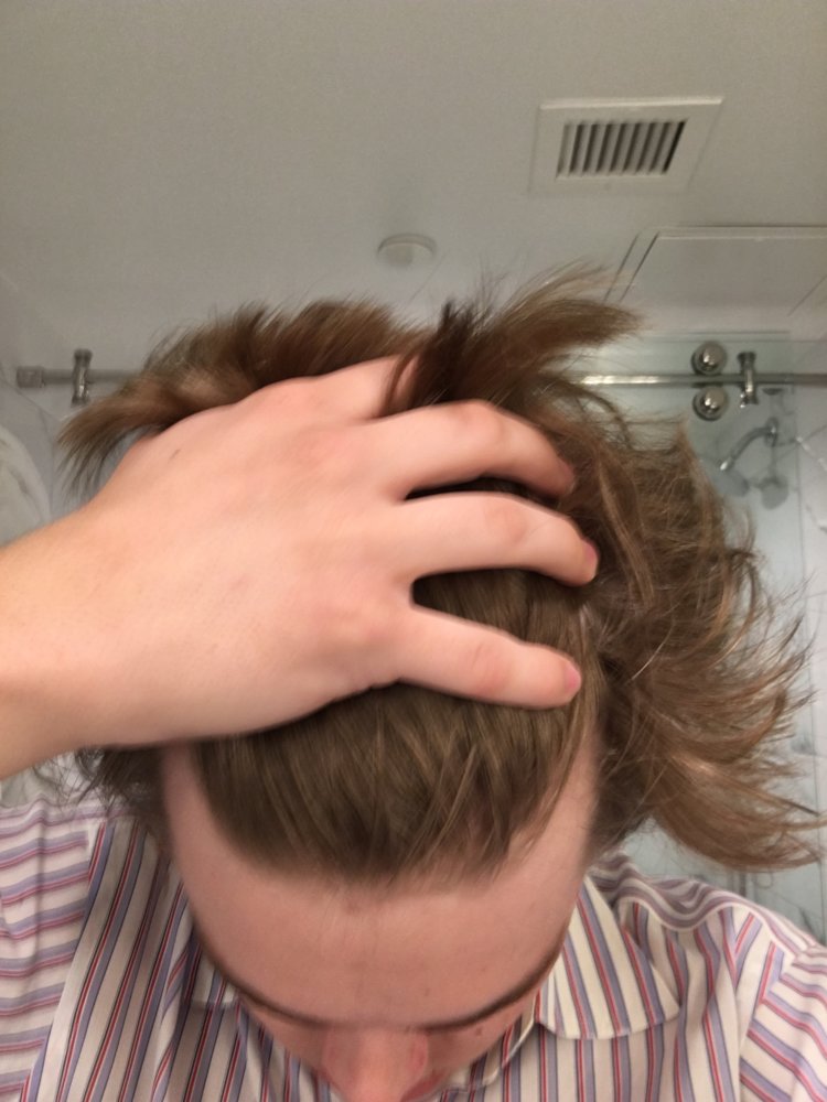 Well, despite the insistence that I could not possibly be balding that I’ve experienced on these forums, these next pictures look awful and I think show definite hairline recession. I guess I’m now balding at 17.
