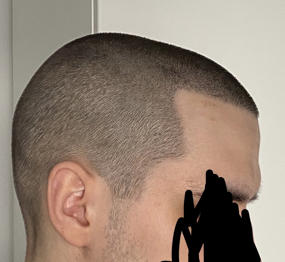This is how it look now. Im really happy with my Norwood 2 transplanted hairline, all I want is to thicken my existing hairs or AT LEAST stop further loss. Hair length is 4mm. My forehead is 6cm (4 fingers) and I think that every guy look good with NW2 especially If you are 30 years old +. I dont need NW1/NW0 to be happy.
