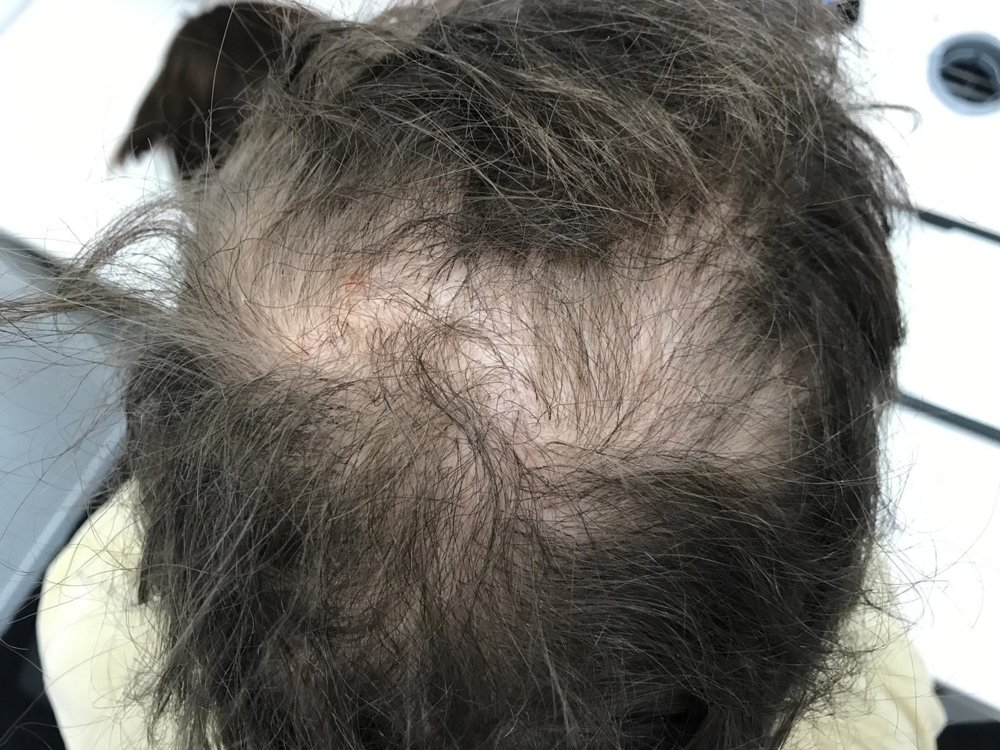 I was using minoxidil topically for one year, but I switched to oral in April as covering this huge area was painstaking and seemed to make my scalp sore. I stopped oral in May because it seemed like it might be making my facial hair grow faster than I can laser it off.