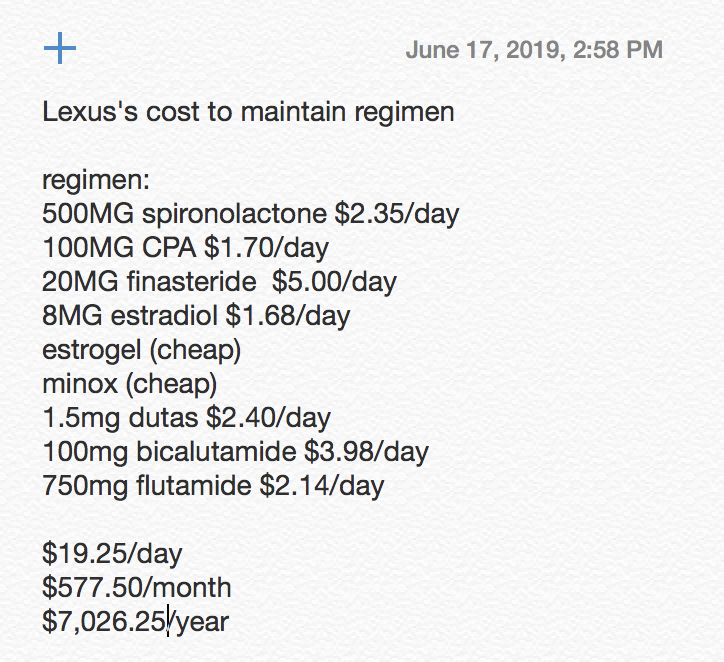 this is how much your regimen costs according to the math I did, it comes out to.... 7,000 per year